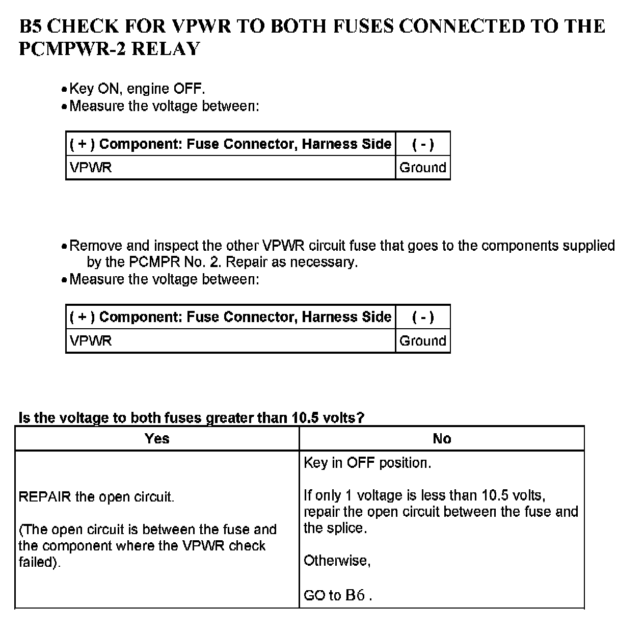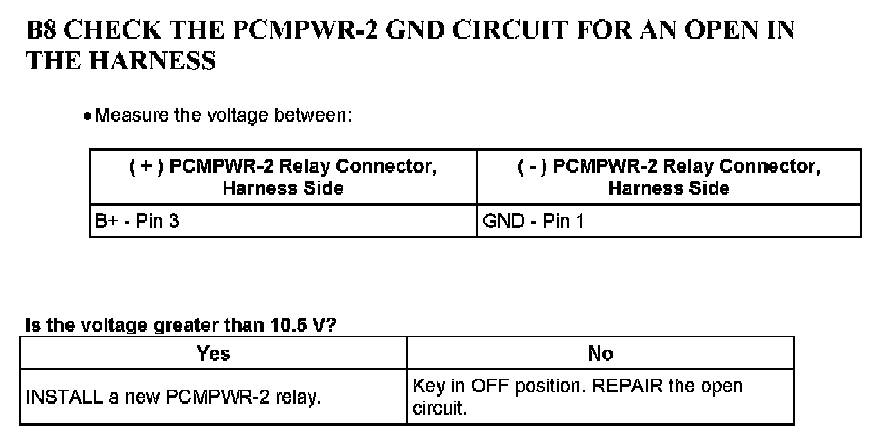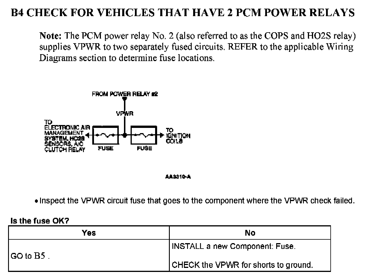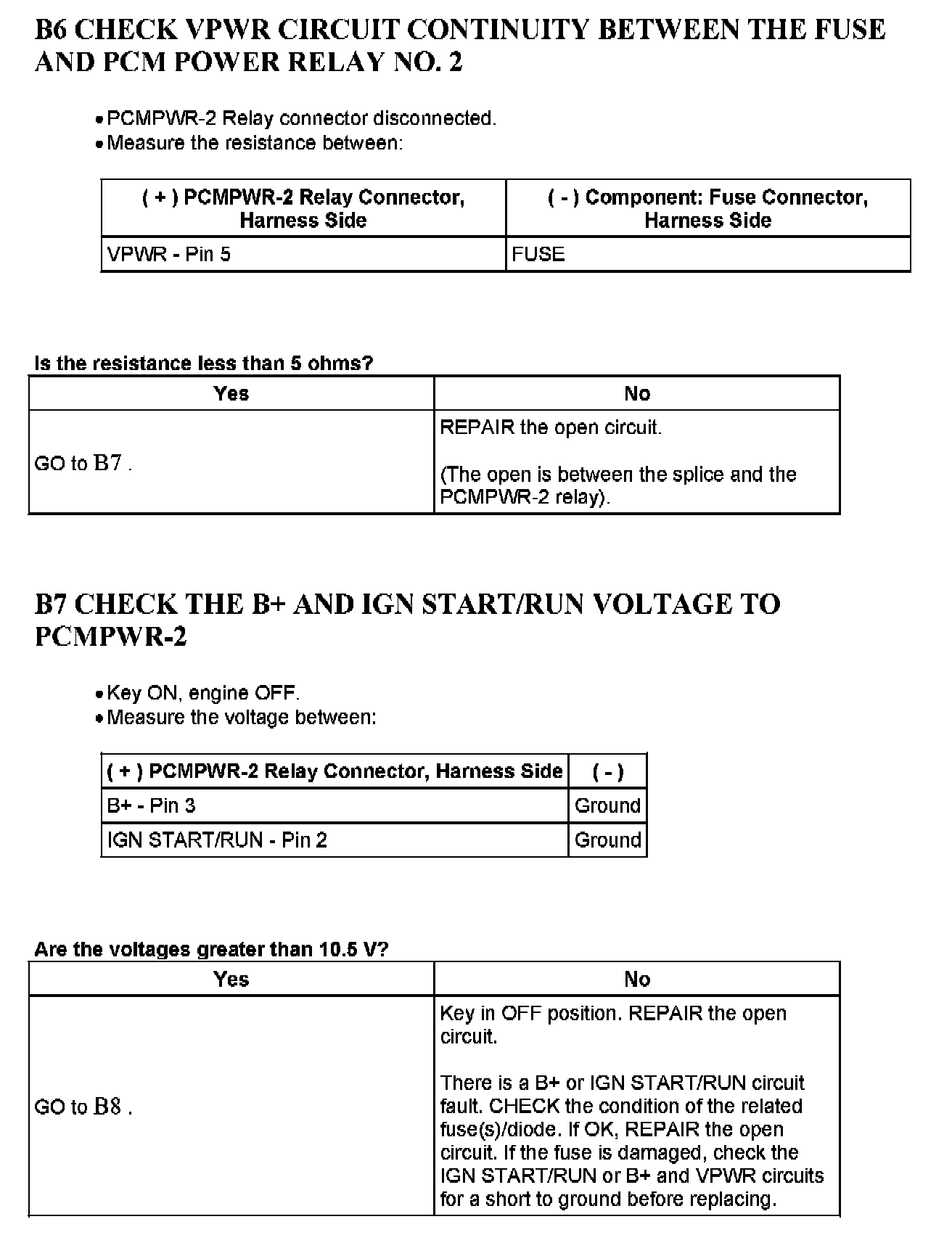 PINPOINT TEST B: POWERTRAIN CONTROL MODULE PCM POWER RELAY