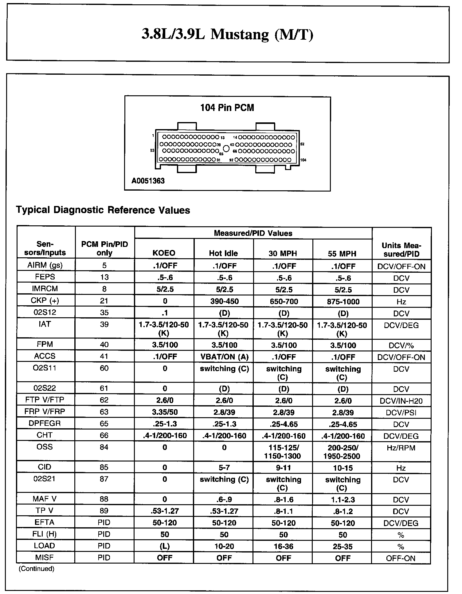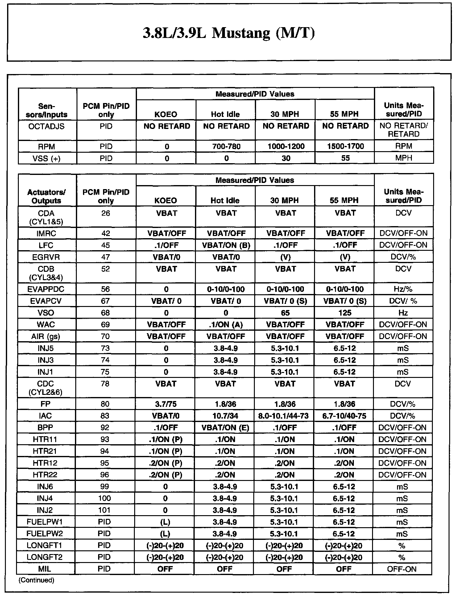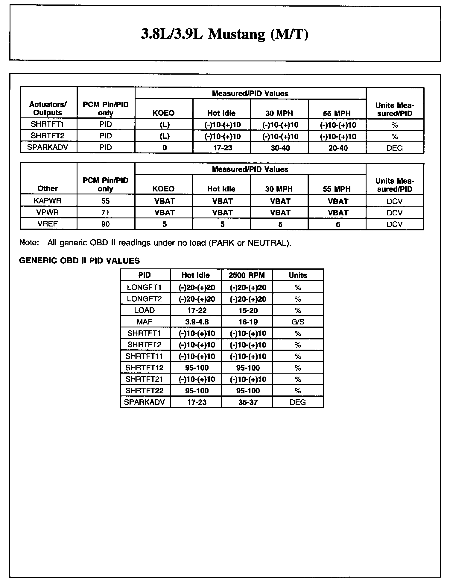 The Typical Diagnostic Reference Value Charts do not display fault PIDs. These are PIDs which indicate a hard fault with the circuit. They display a value of "YES" or "NO" and are PIDs ending with an "F".
