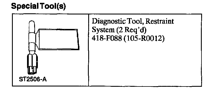 - The restraint system diagnostic tool is for restraint system service only. Remove from vehicle prior to road use. Failure to remove could result in injury and possible violation of vehicle safety standards.