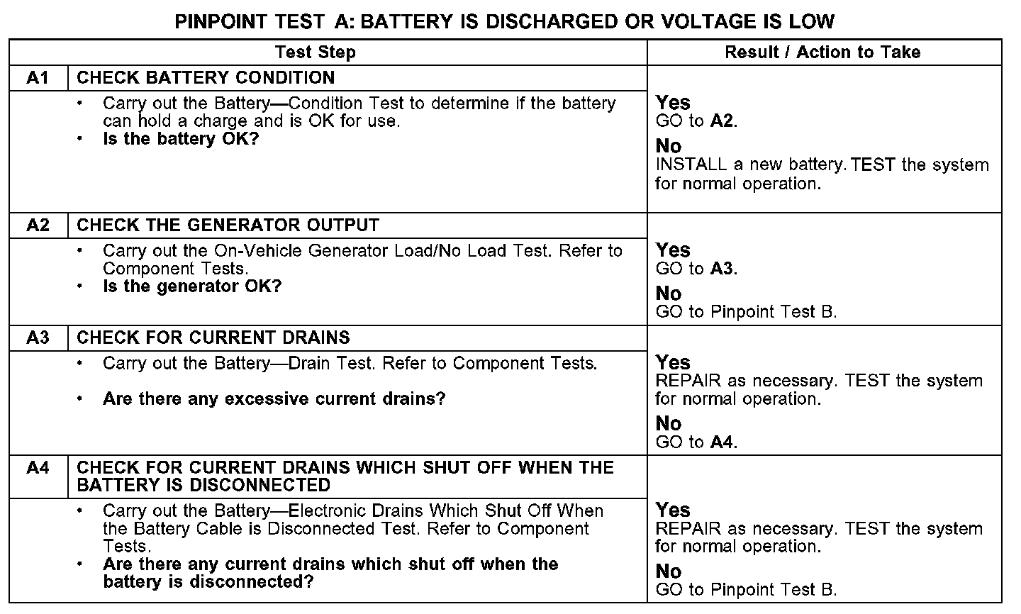 PINPOINT TEST A: BATTERY IS DISCHARGED OR VOLTAGE IS LOW