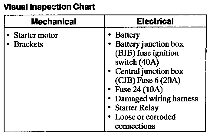 - When using a remote starter switch or jumper wire, be sure the ignition switch is in the OFF position and the transmission is in PARK (A/T) or Neutral (M/T) with the parking brake control fully applied.