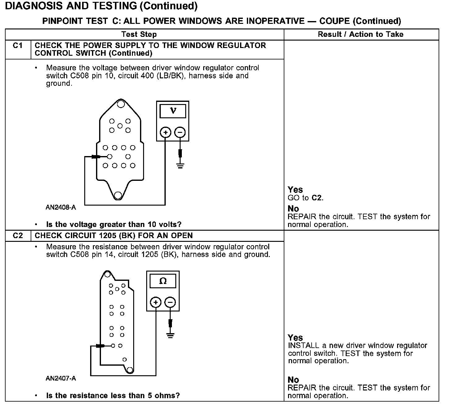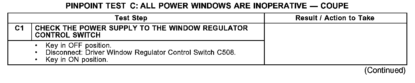 PINPOINT TEST C: ALL POWER WINDOWS ARE INOPERATIVE - COUPE