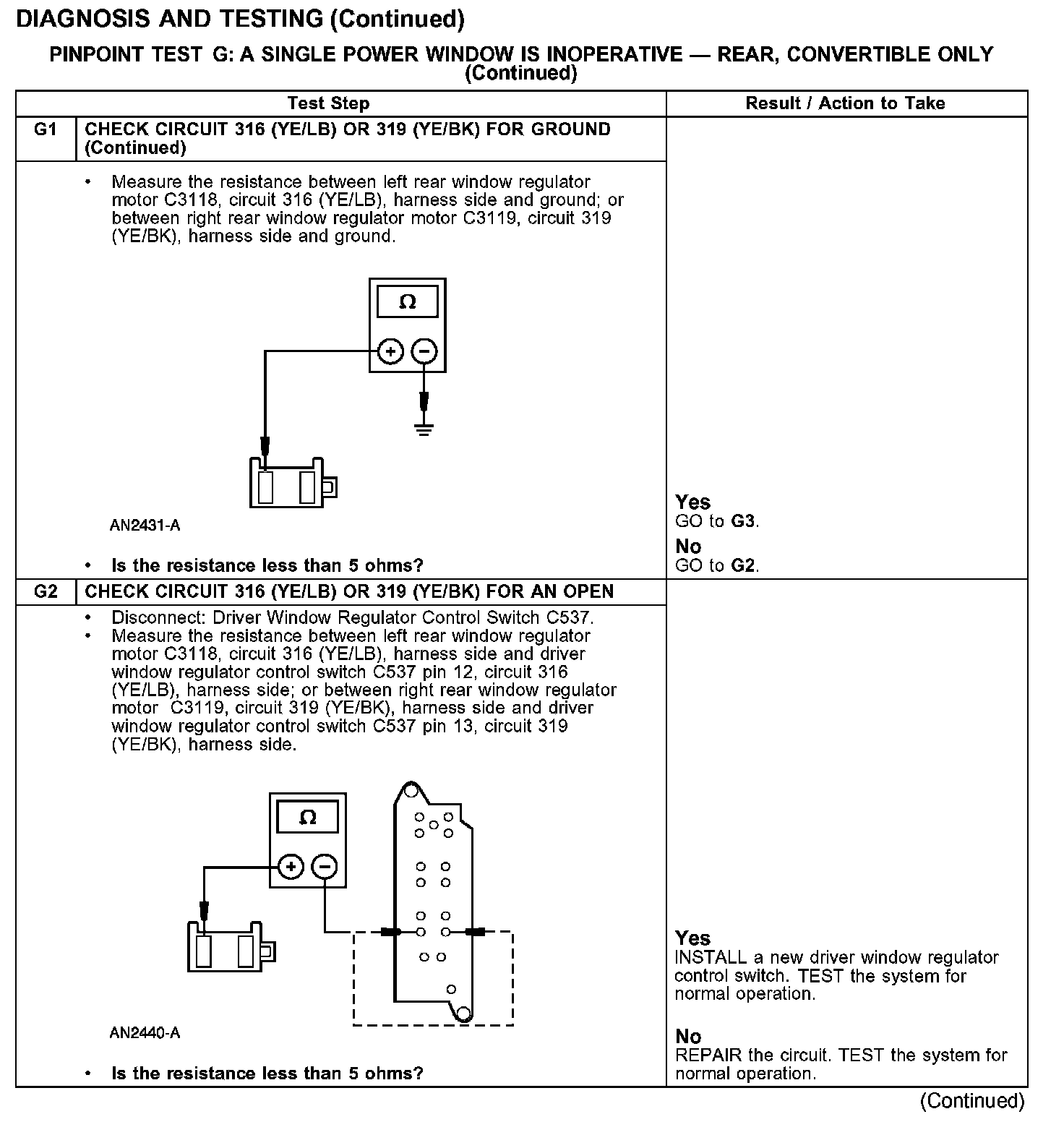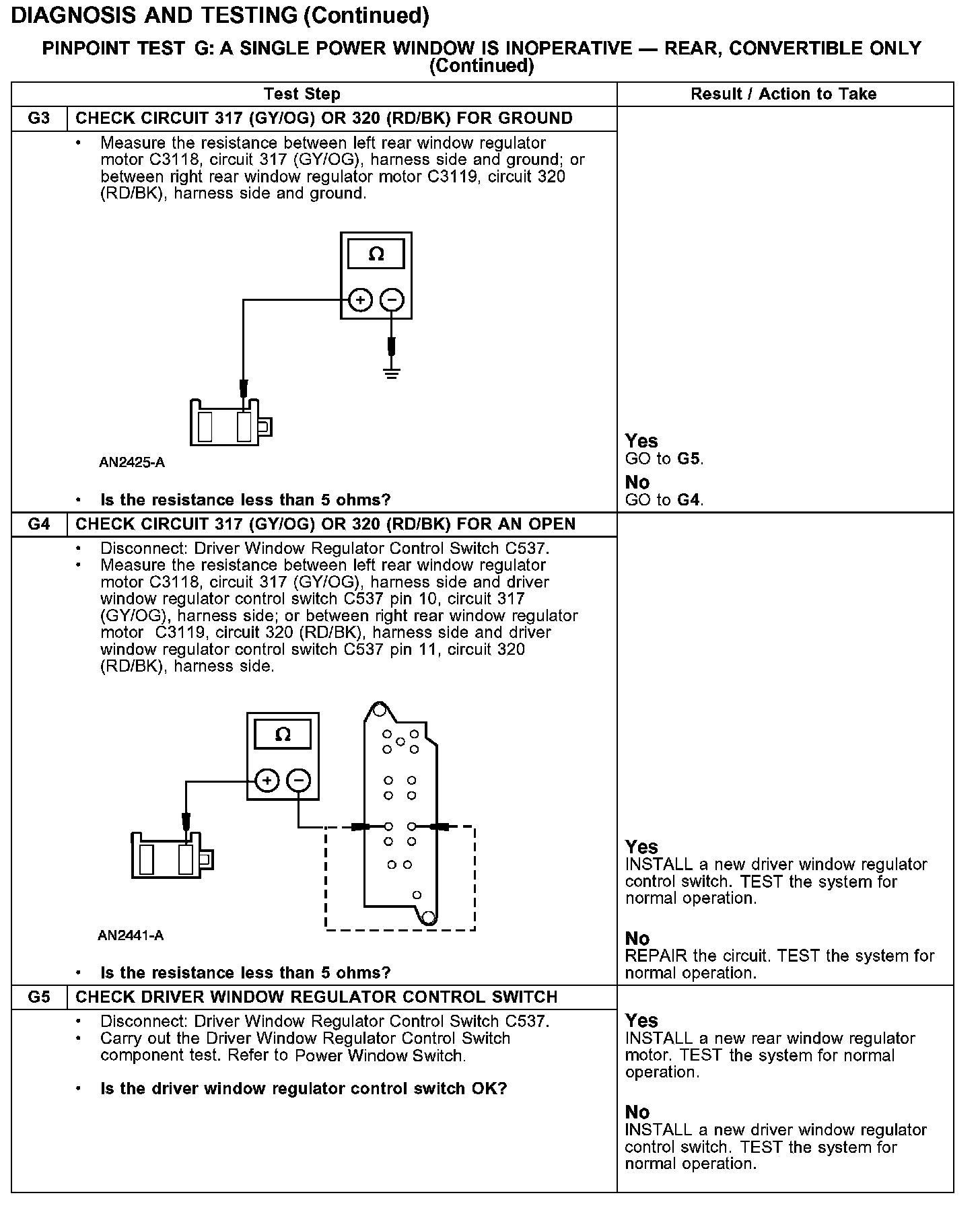 PINPOINT TEST G: A SINGLE POWER WINDOW IS INOPERATIVE - REAR, CONVERTIBLE ONLY