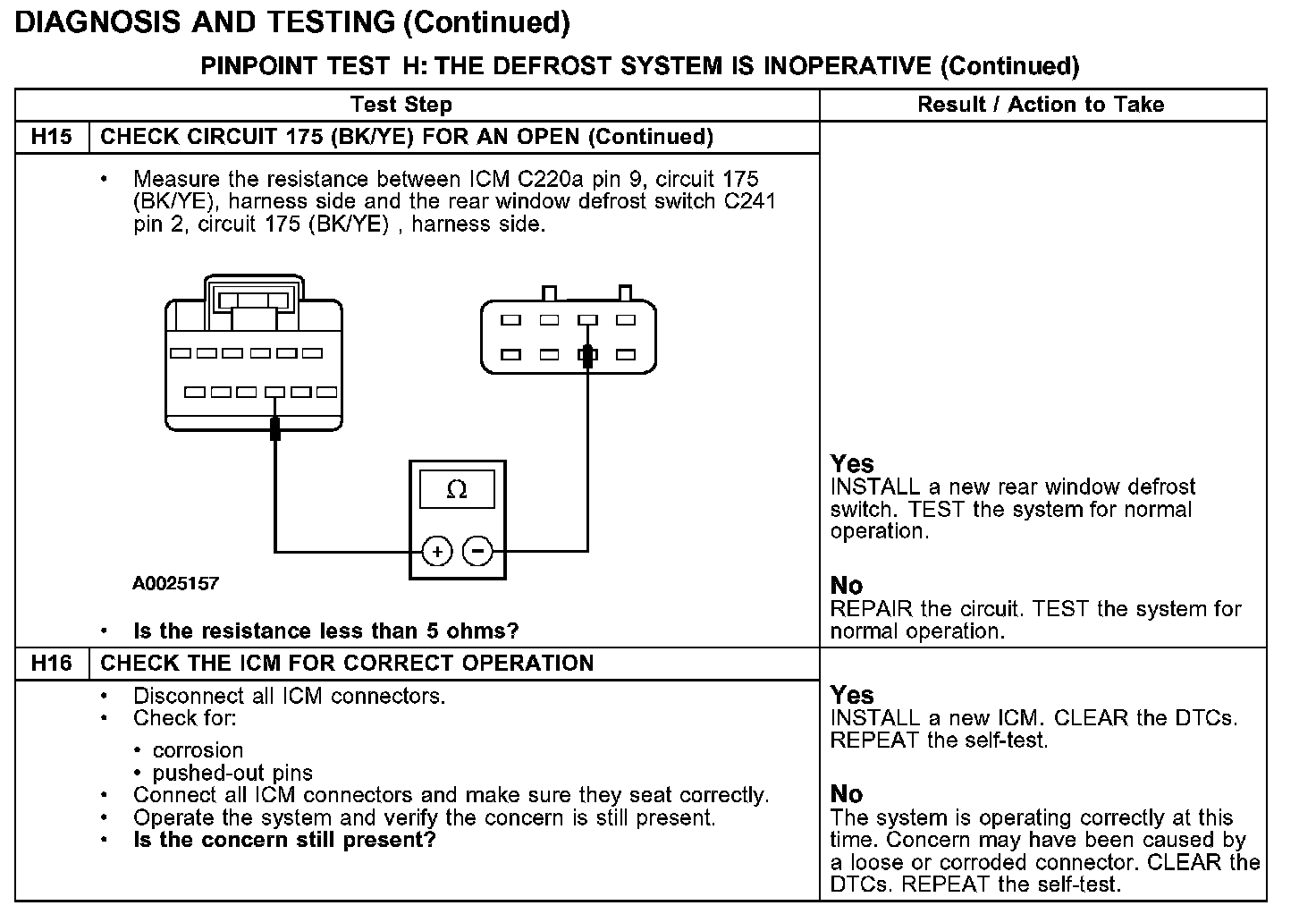 PINPOINT TEST H: THE DEFROST SYSTEM IS INOPERATIVE