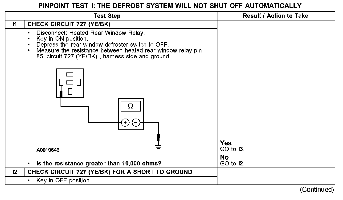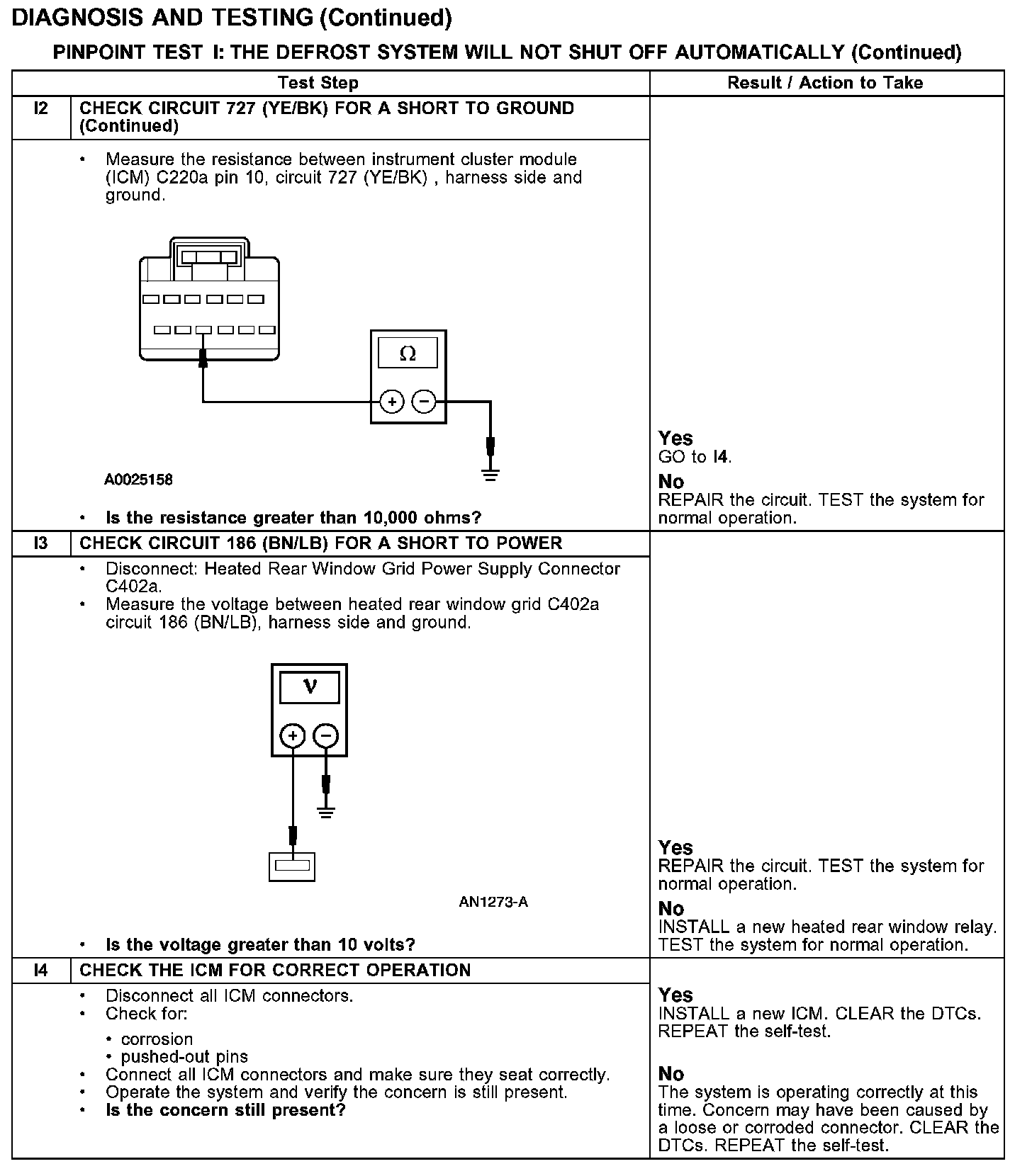PINPOINT TEST I: THE DEFROST SYSTEM WILL NOT SHUT OFF AUTOMATICALLY