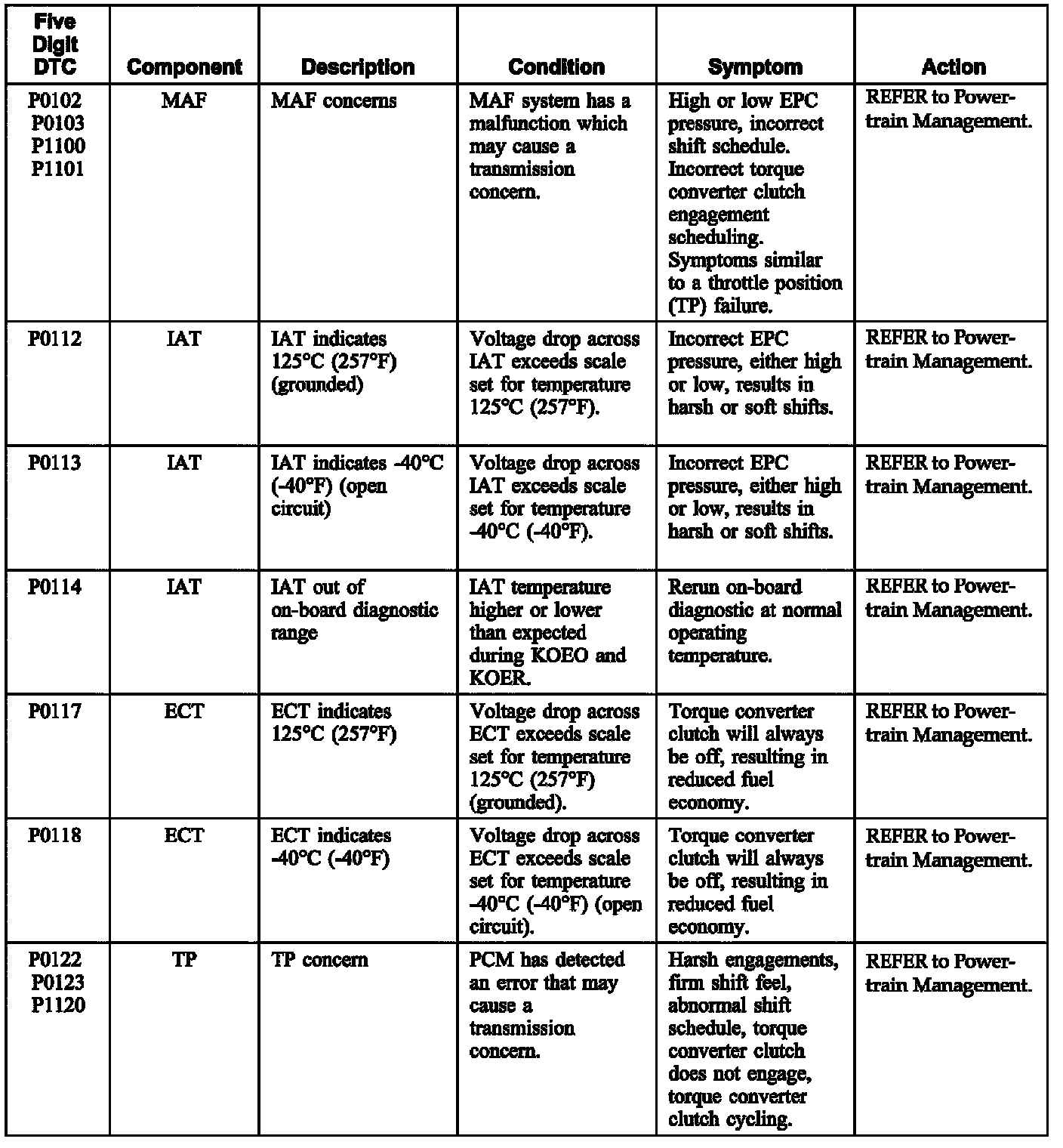Diagnostic Trouble Code Chart