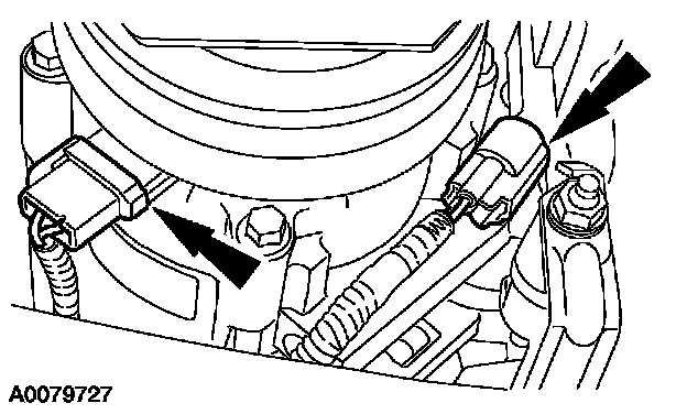 5. Disconnect the A/C compressor field coil and the crankshaft position (CKP) sensor electrical connectors.