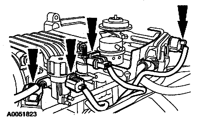 5. Disconnect the vacuum hoses from the differential pressure feedback EGR system.
