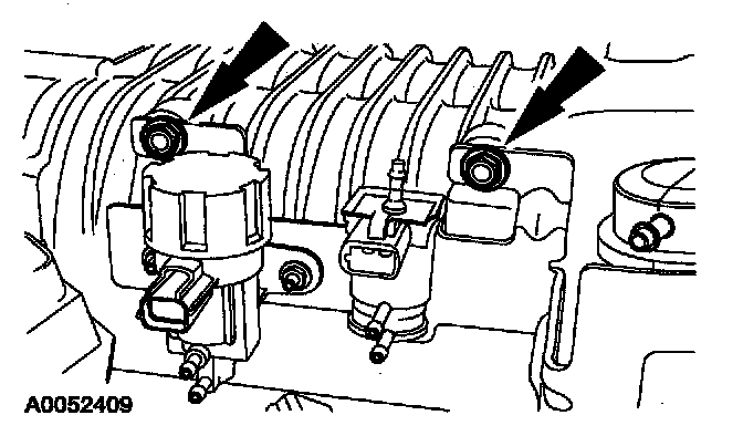 7. Disconnect the vacuum hoses from the fuel pulse damper and the EGR vacuum regulator solenoid.
