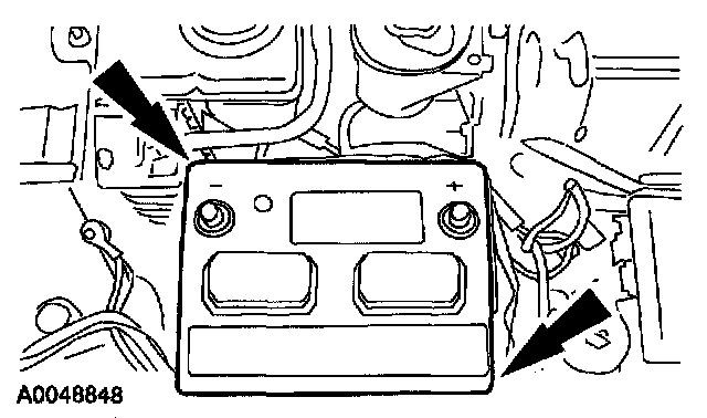 4. WARNING: When lifting a battery, excessive pressure on the end walls may cause acid to leak out through the vent caps, resulting in personal injury, damage to the vehicle or the battery. Failure to follow these instructions may result in personal injury.