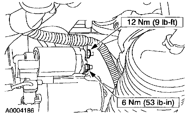 - When working in area of the starter motor, be careful to avoid touching hot exhaust components. Failure to follow these instructions can result in personal injury.