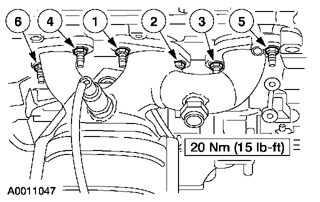 Exhaust manifold bolts 20 Nm (15 ft.lbs.)