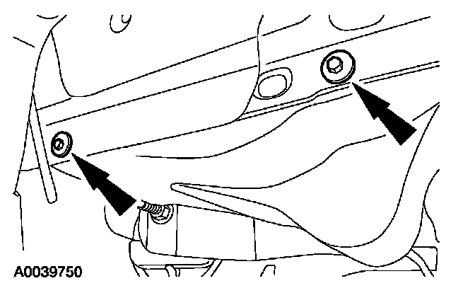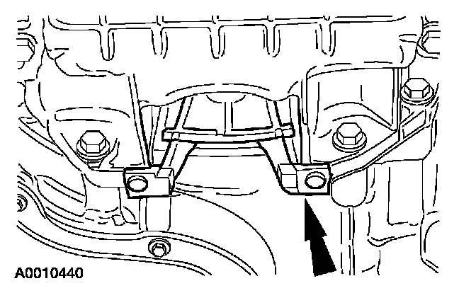6. Remove the nuts and the bolt. Position the power steering reservoir aside.
