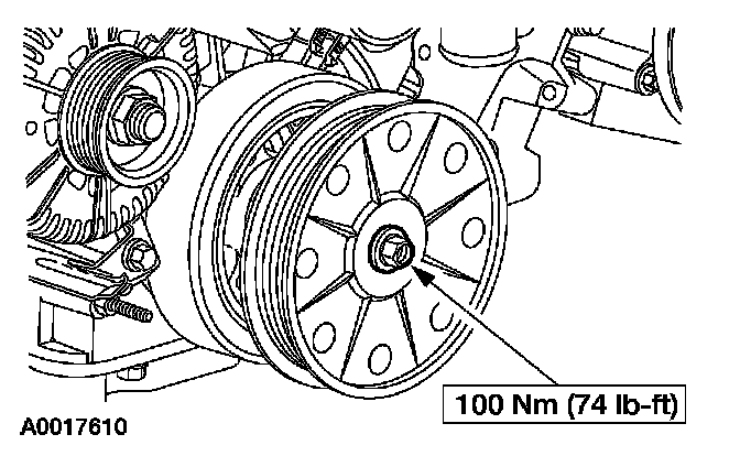 13. NOTE: The crankshaft pulley bolt has a reverse thread.