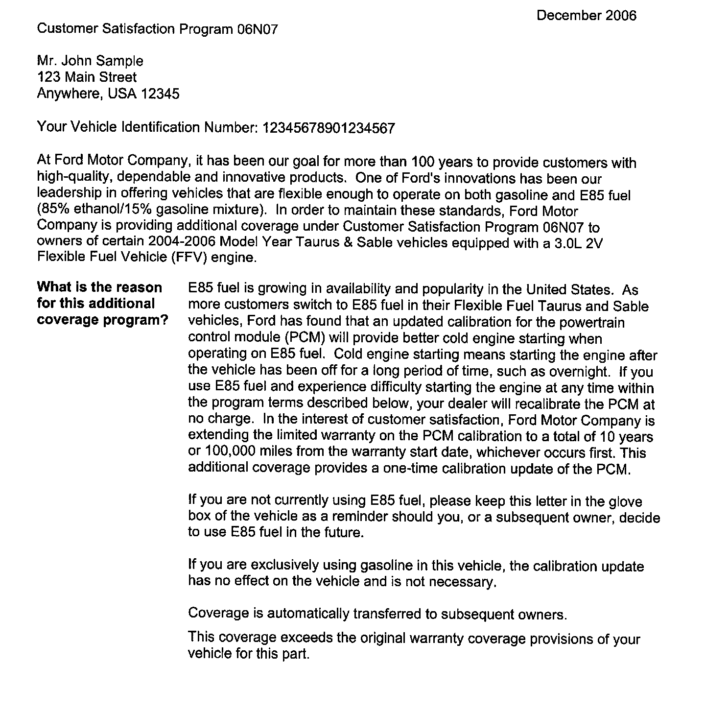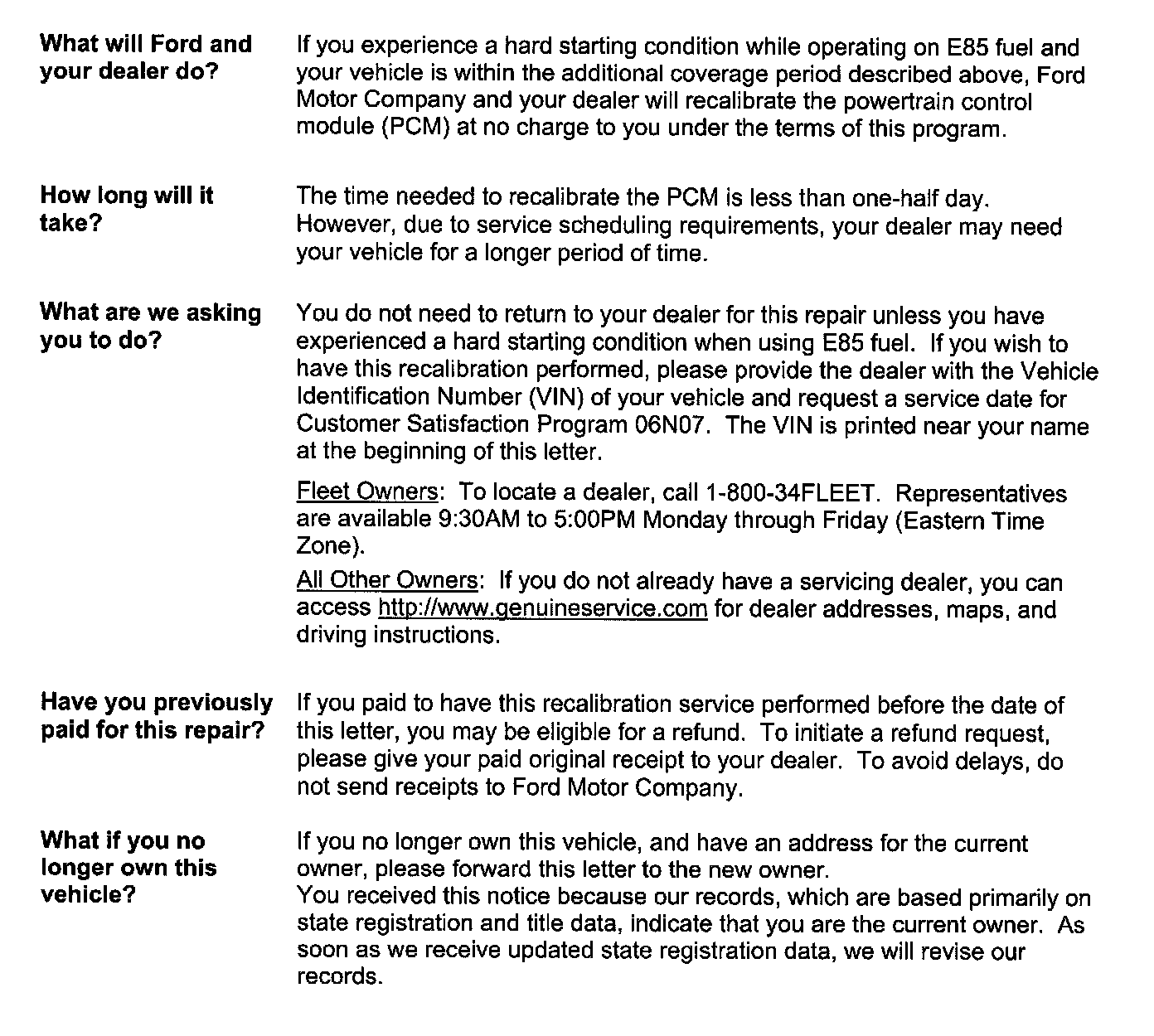 Campaign - Hard Start on E85 - PCM Recalibration