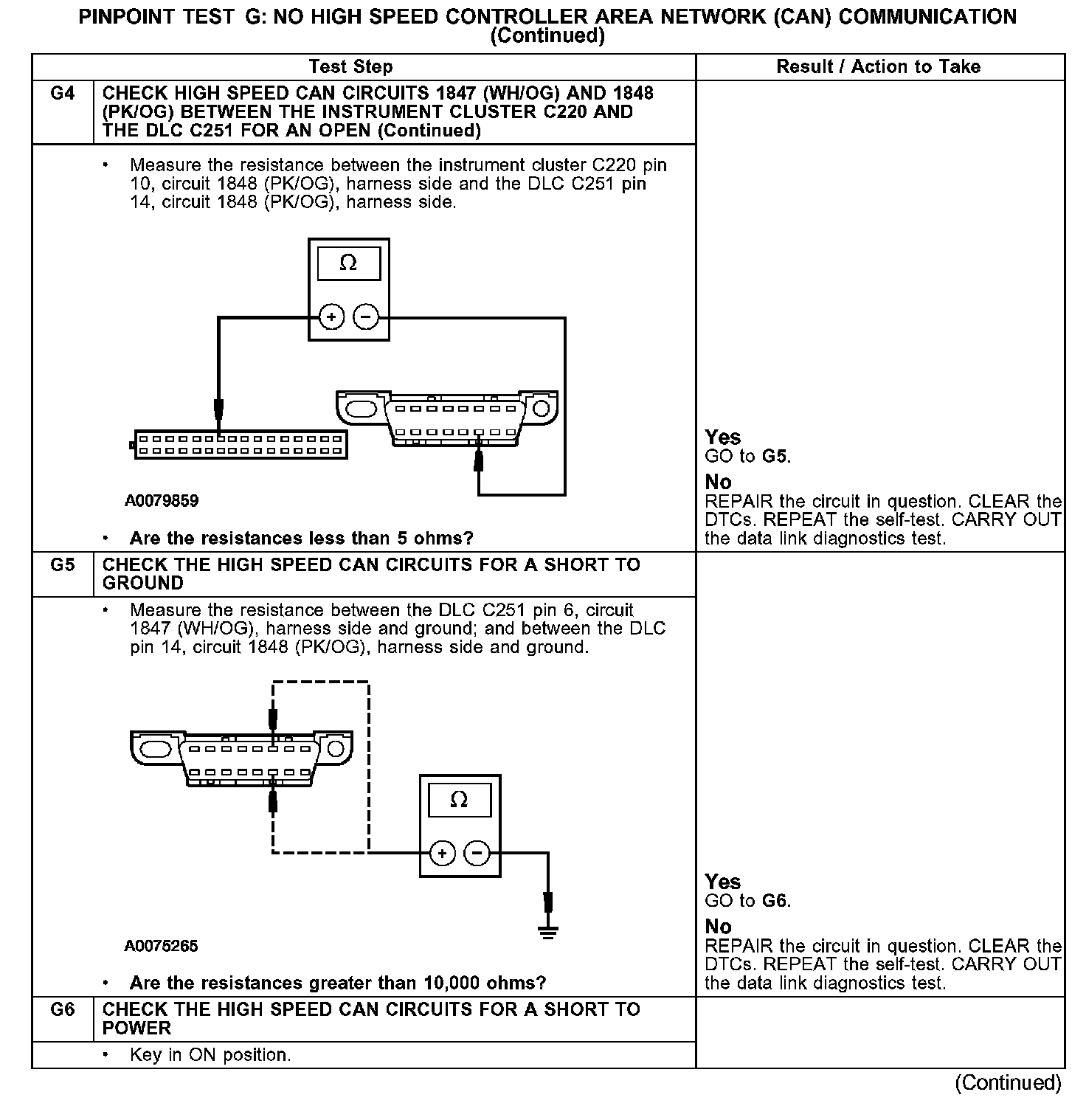 PINPOINT TEST G: NO HIGH SPEED CONTROLLER AREA NETWORK (CAN) COMMUNICATION