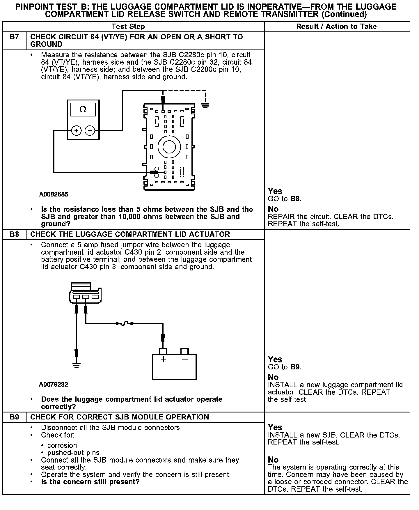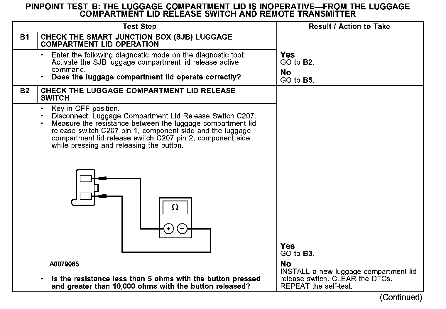 PINPOINT TEST B: THE LUGGAGE COMPARTMENT LID IS INOPERATIVE - FROM THE LUGGAGE COMPARTMENT LID RELEASE SWITCH AND REMOTE TRANSMITTER