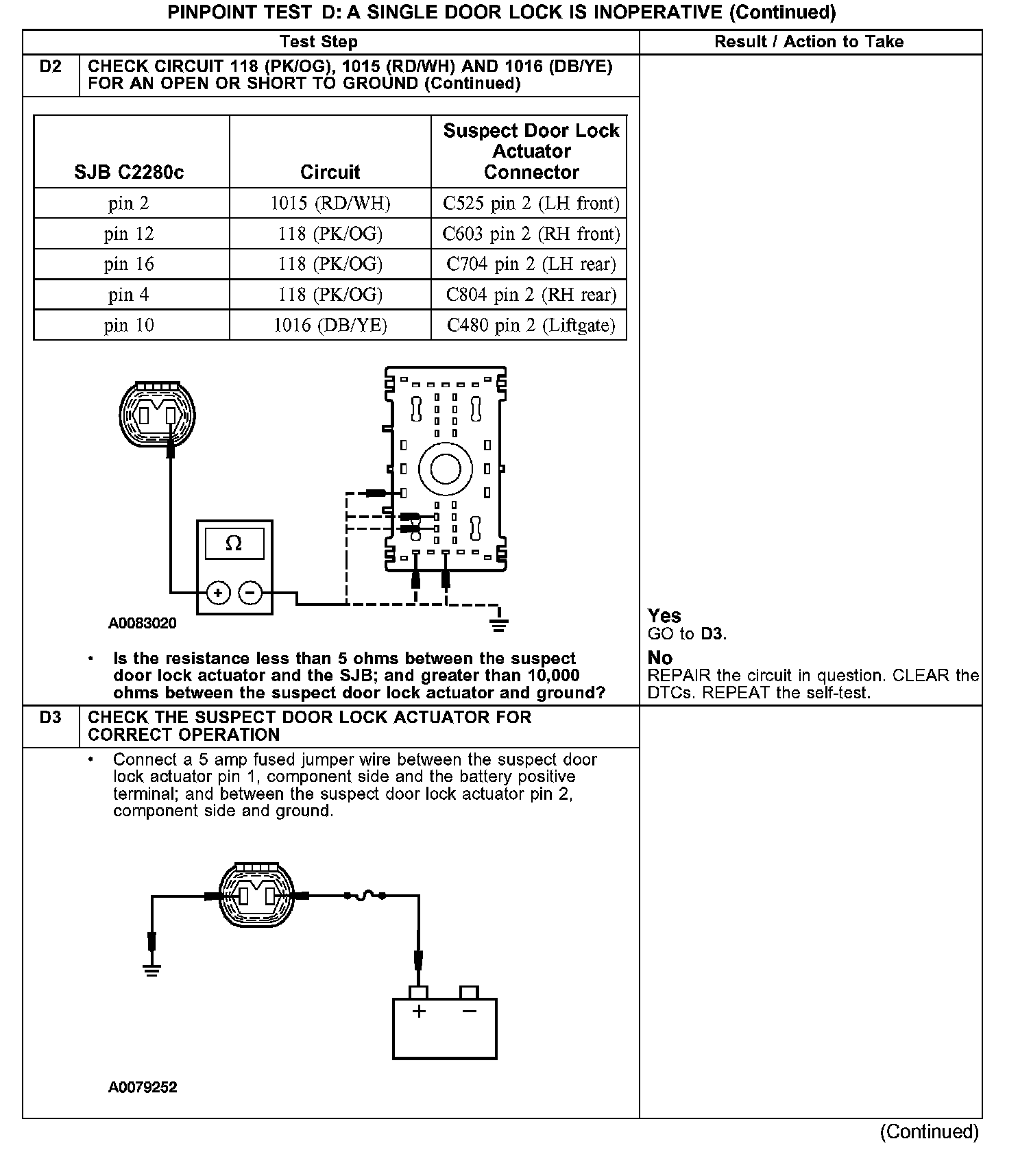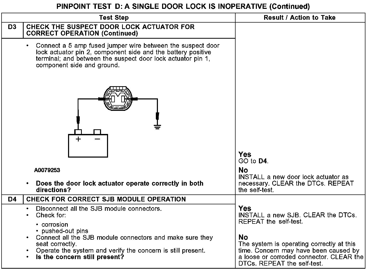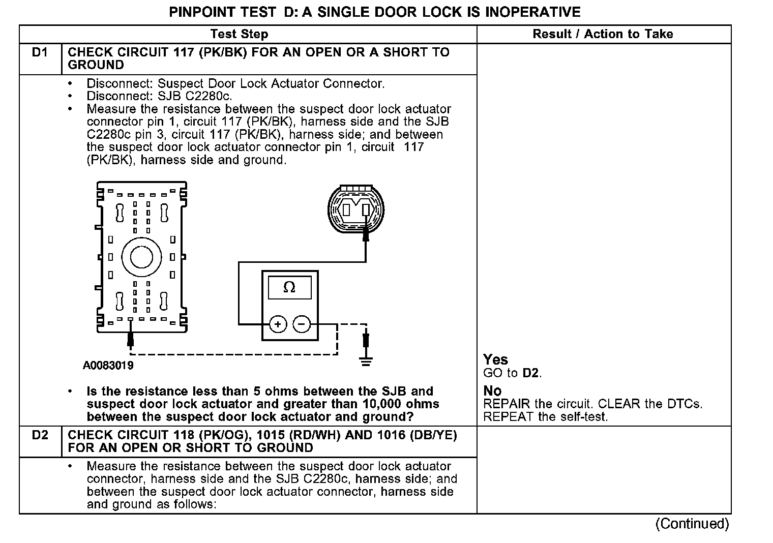 PINPOINT TEST D: A SINGLE DOOR LOCK IS INOPERATIVE