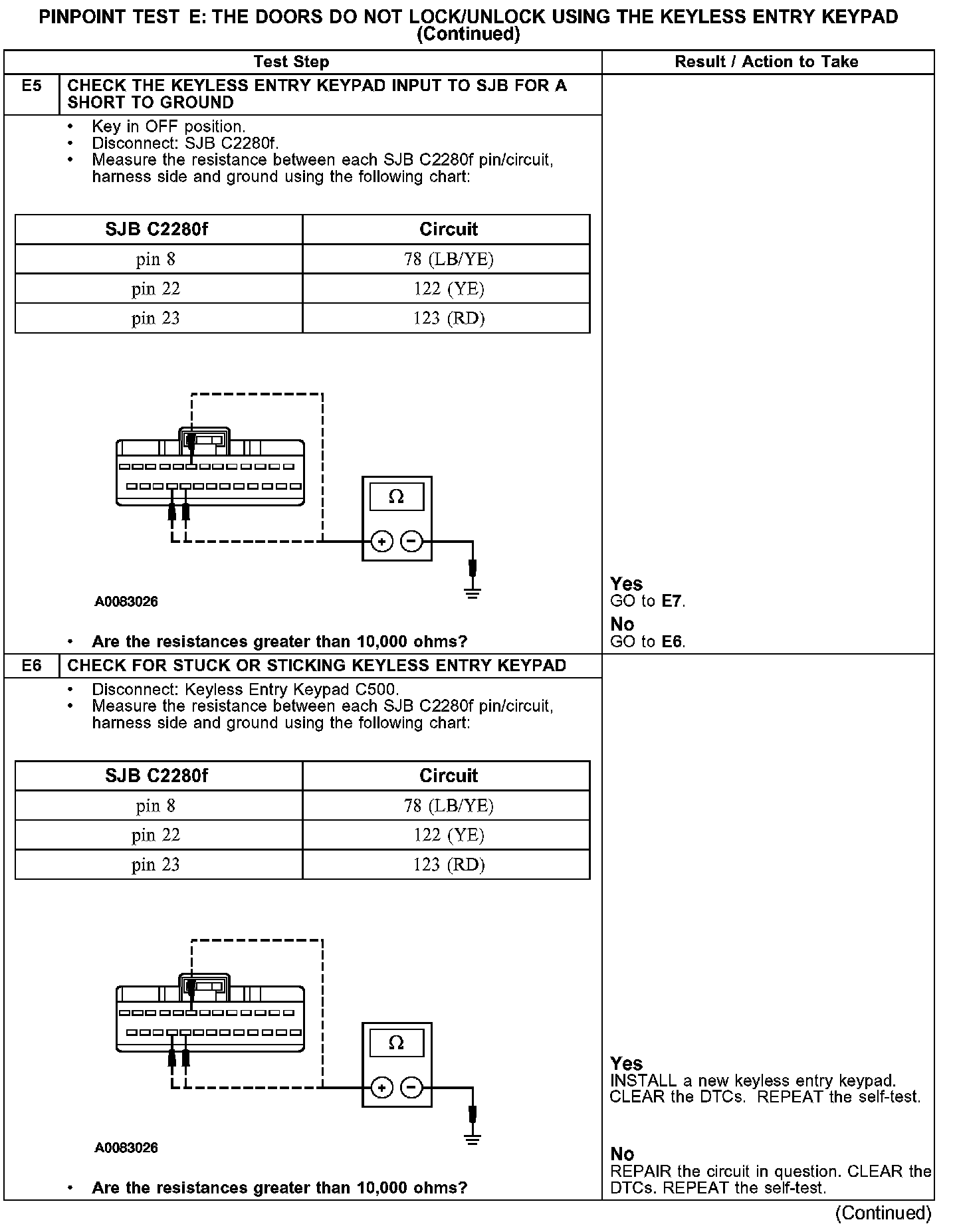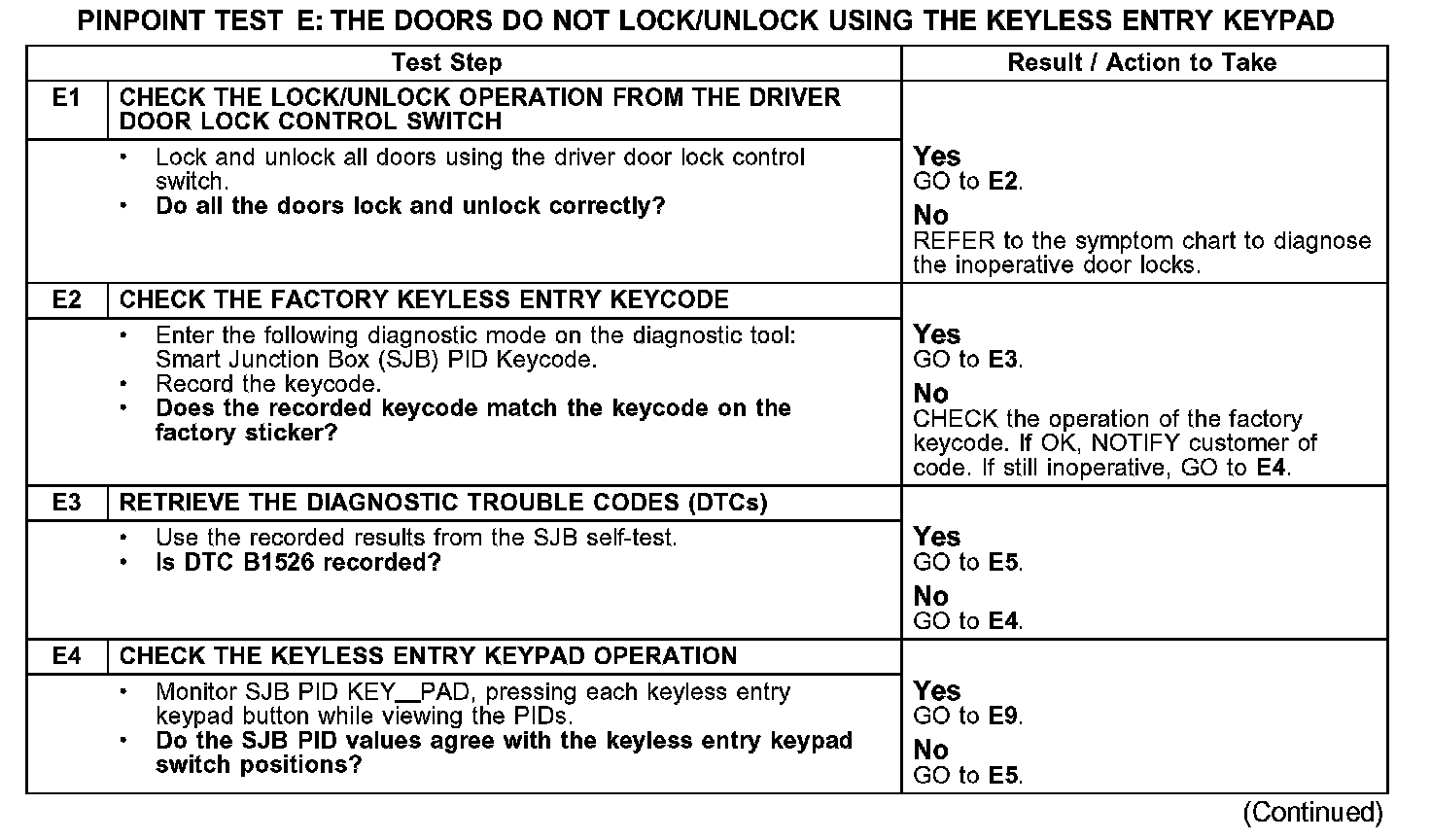 PINPOINT TEST E: THE DOORS DO NOT LOCK/UNLOCK USING THE