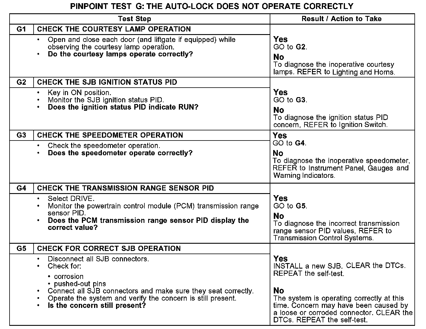 PINPOINT TEST G: THE AUTO-LOCK DOES NOT OPERATE CORRECTLY