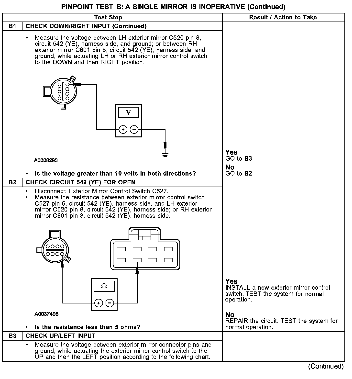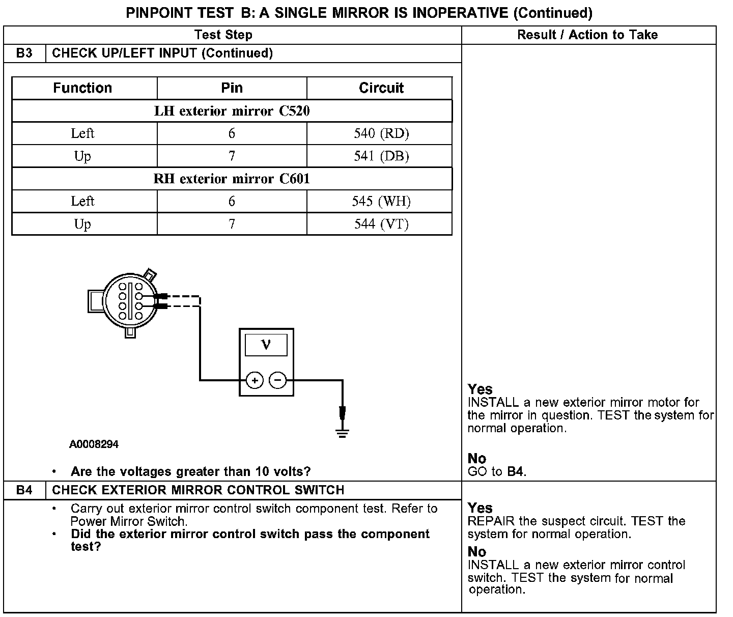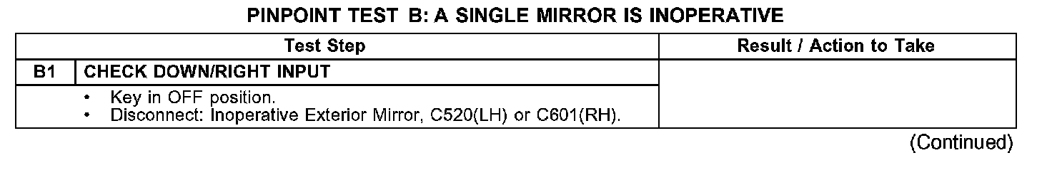 PINPOINT TEST B: A SINGLE MIRROR IS INOPERATIVE