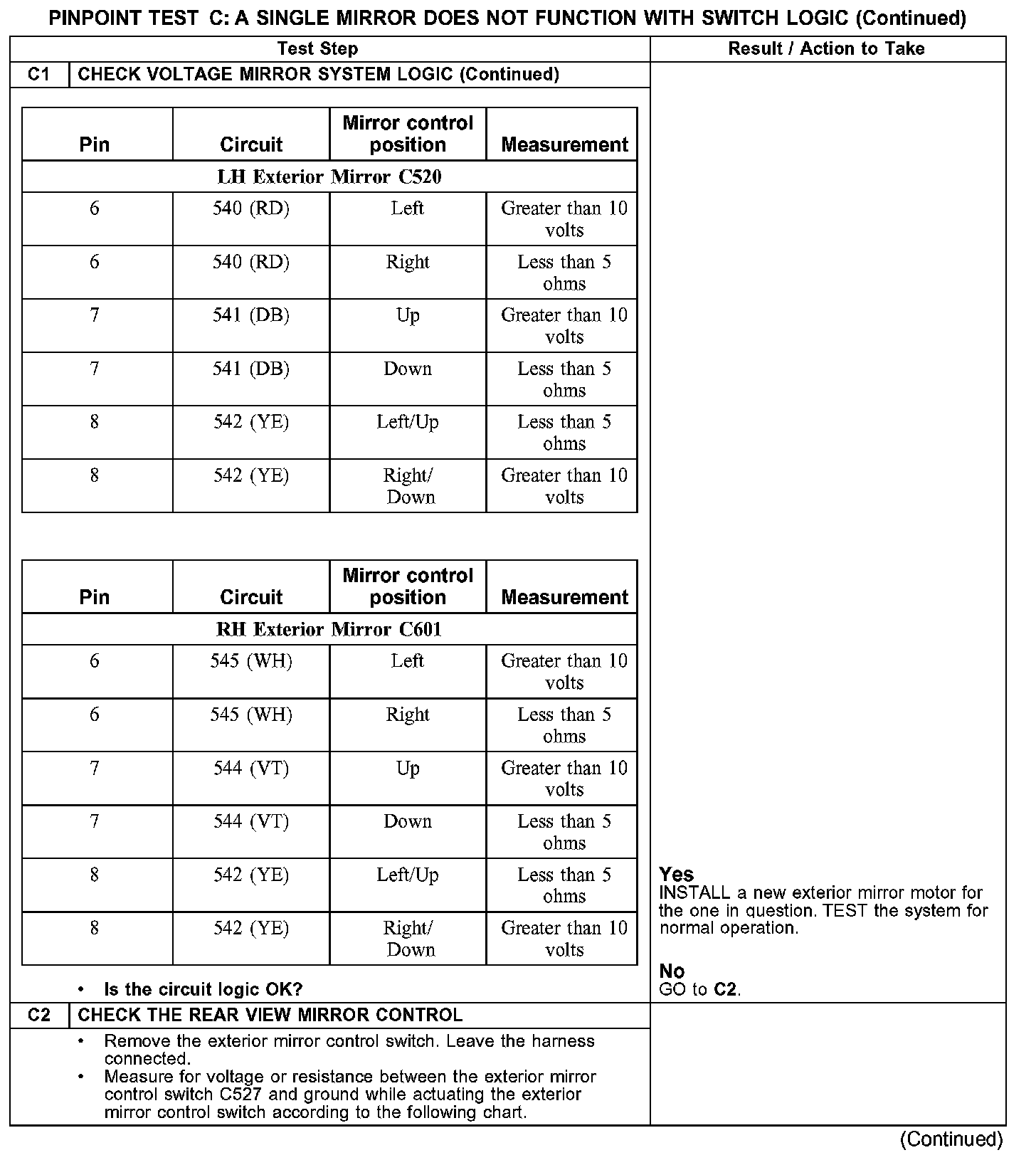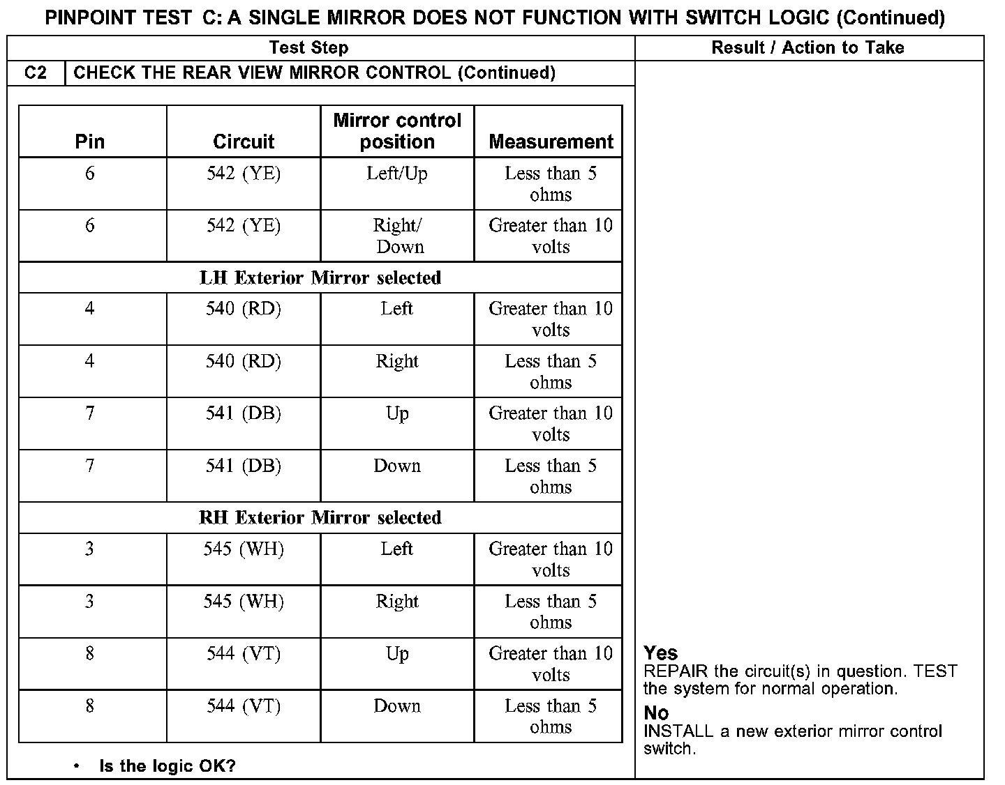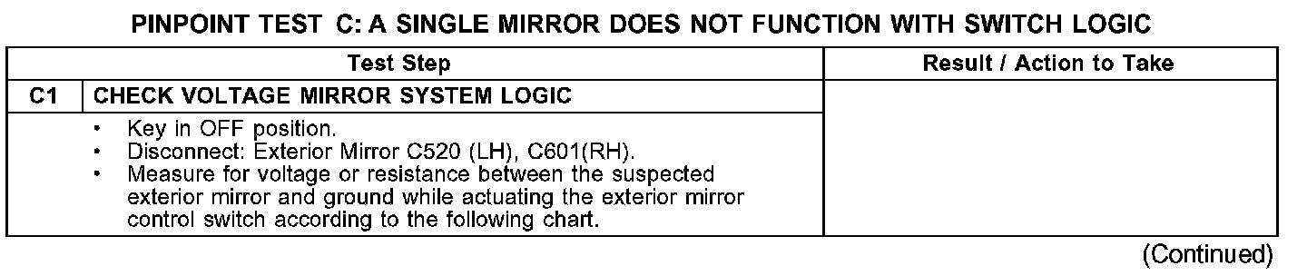 PINPOINT TEST C: A SINGLE MIRROR DOES NOT FUNCTION WITH SWITCH LOGIC