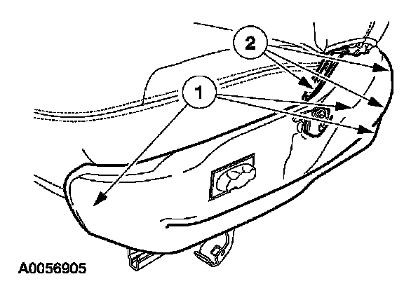 1 NOTE: Route the power seat (if equipped) switch wire harness through the side of the seat while positioning the outer side shield to the seat.
