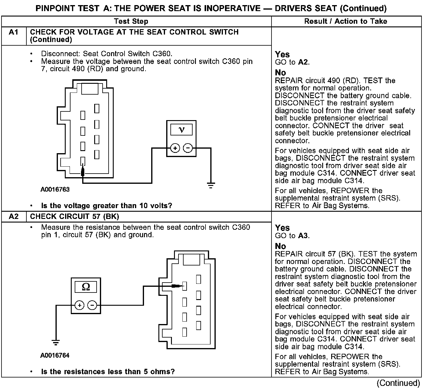 PINPOINT TEST A: THE POWER SEAT IS INOPERATIVE - DRIVERS SEAT