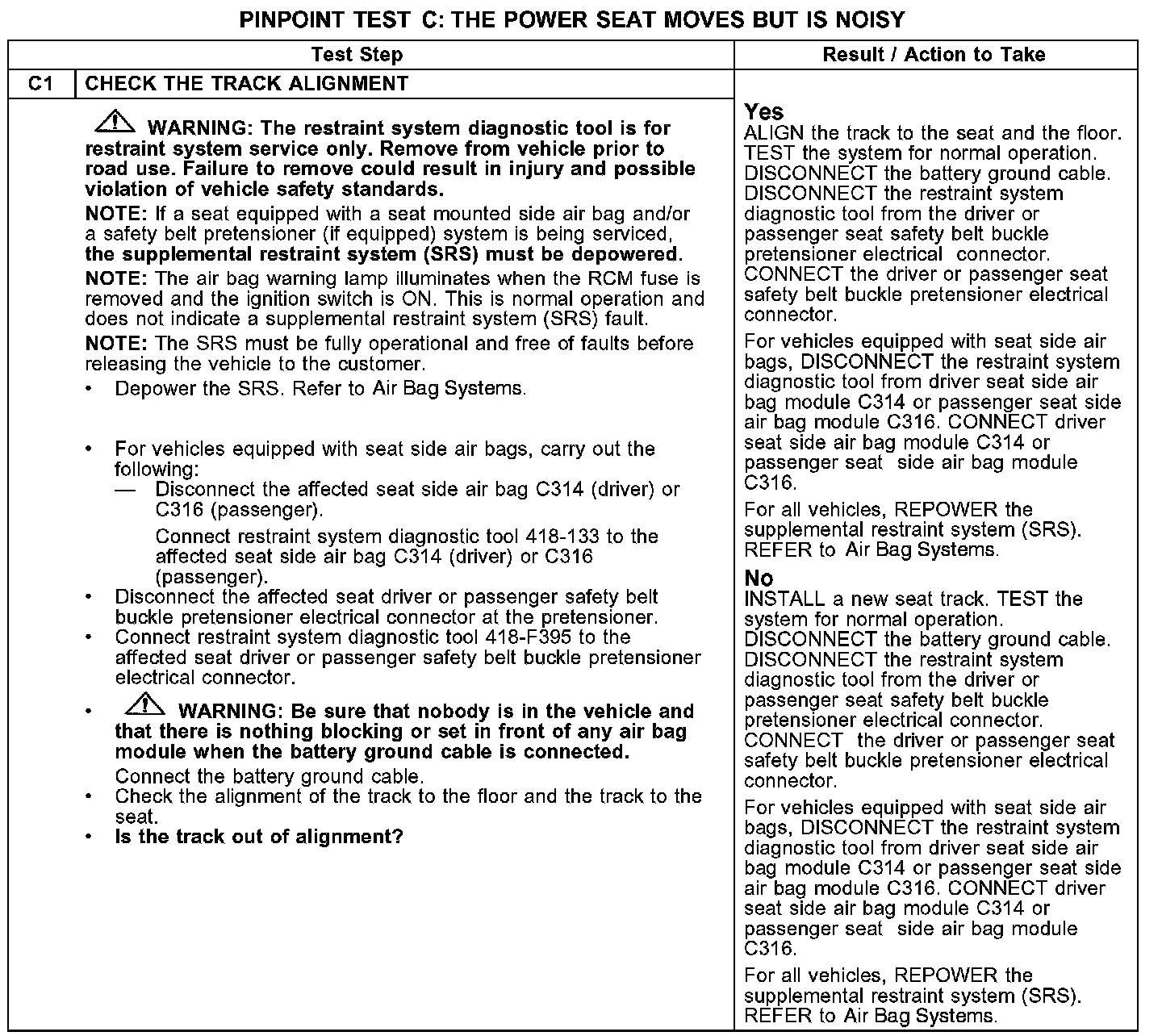 PINPOINT TEST C: THE POWER SEAT MOVES BUT IS NOISY