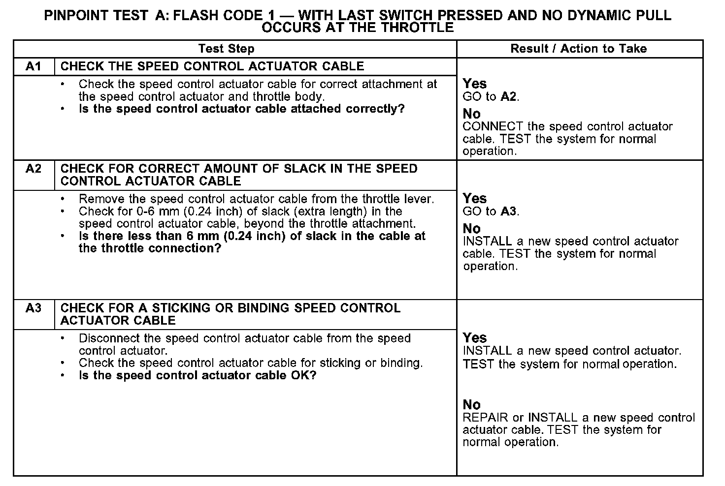 PINPOINT TEST A: FLASH CODE 1 - WITH LAST SWITCH PRESSED AND NO DYNAMIC PULL OCCURS AT THE THROTTLE