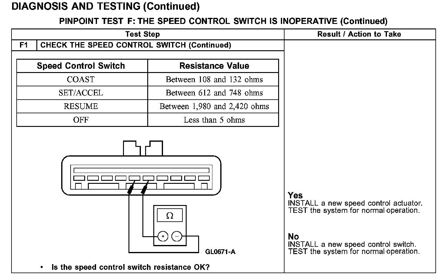 PINPOINT TEST F: THE SPEED CONTROL SWITCH IS INOPERATIVE