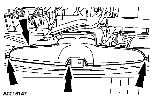 1. Remove the plenum chamber. Refer to: Heating and Air Conditioning, Heater Core, Service and Repair, Heater Core and Evaporator Core Housing, Heater Core and Evaporator Core Housing