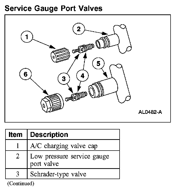 - Always install the A/C charging valve cap on the service gauge port valves after repairing the refrigerant system.