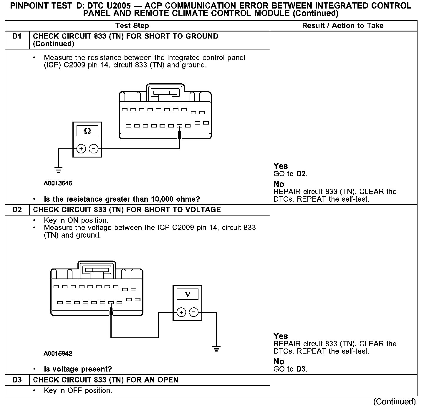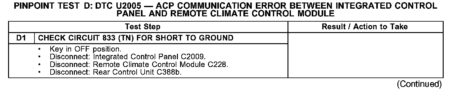PINPOINT TEST D: DTC U2005 - ACP COMMUNICATION ERROR BETWEEN INTEGRATED CONTROL PANEL AND REMOTE CLIMATE CONTROL MODULE