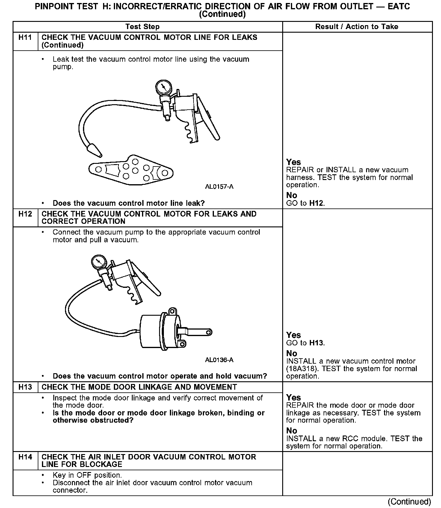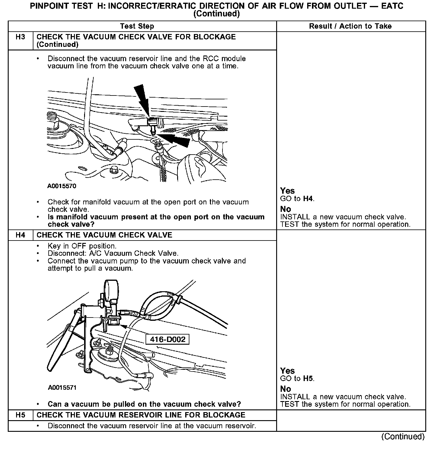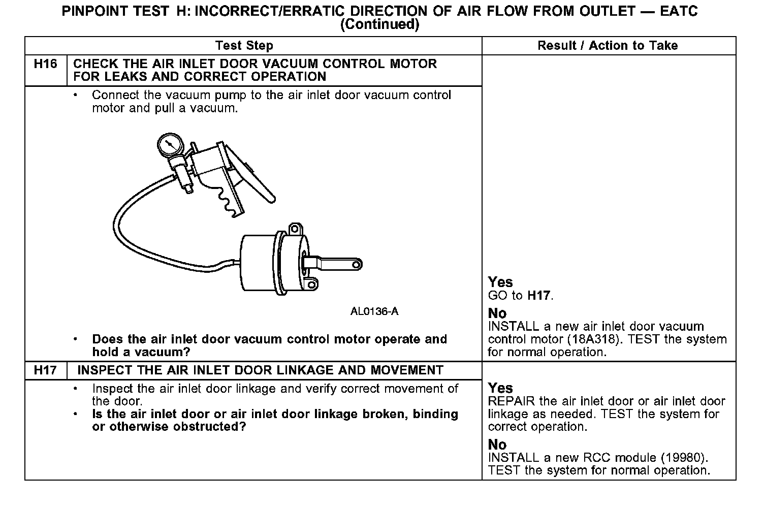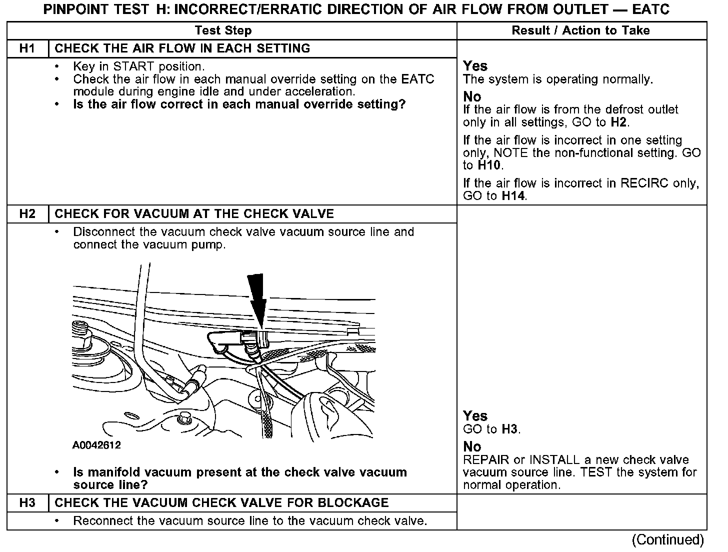 PINPOINT TEST H: INCORRECT/ERRATIC DIRECTION OF AIR FLOW FROM OUTLET - EATC
