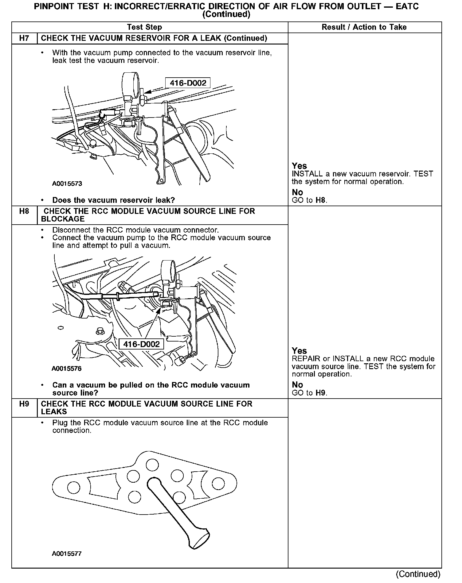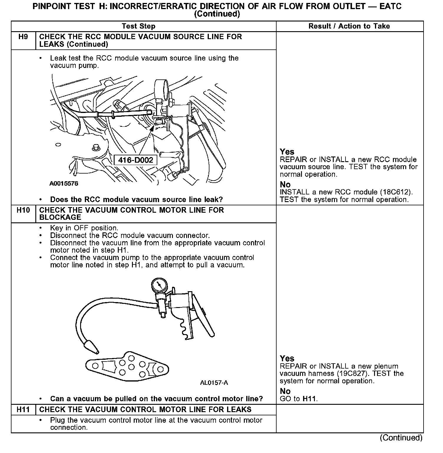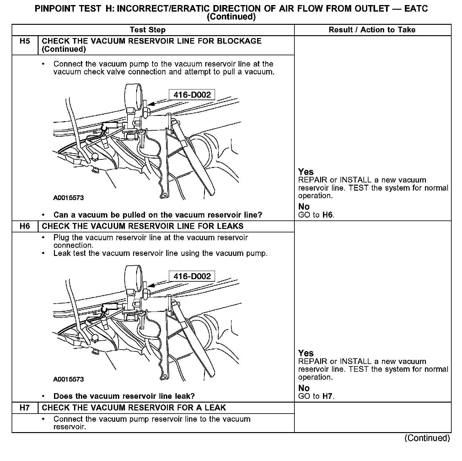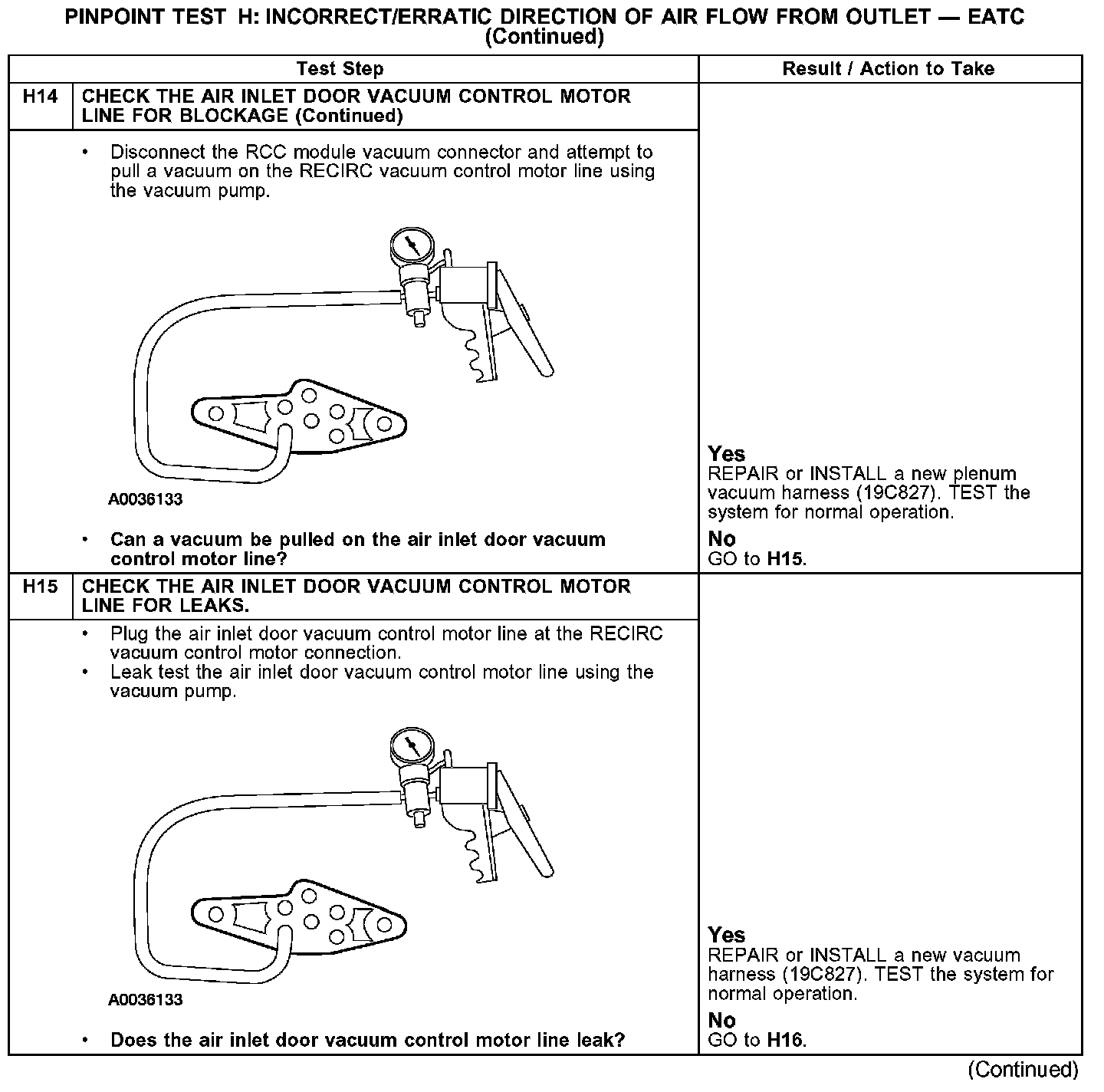 PINPOINT TEST H: INCORRECT/ERRATIC DIRECTION OF AIR FLOW FROM OUTLET - EATC