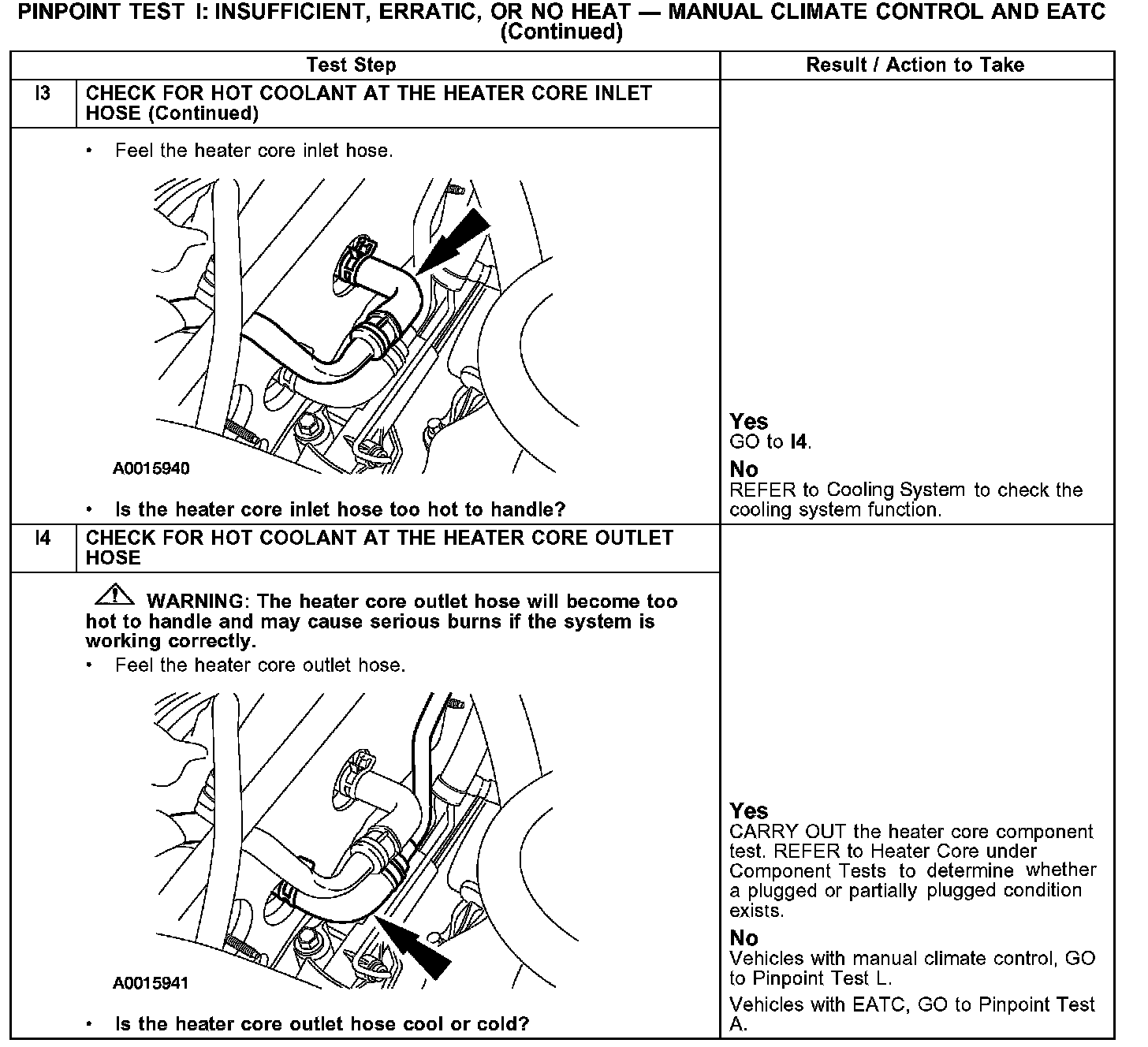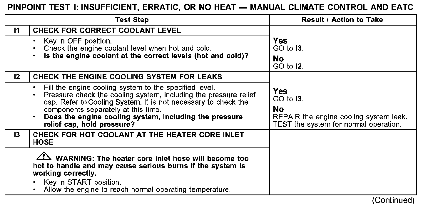 PINPOINT TEST I: INSUFFICIENT, ERRATIC, OR NO HEAT - MANUAL CLIMATE CONTROL AND EATC