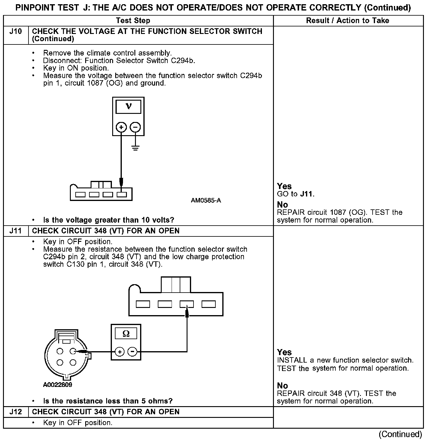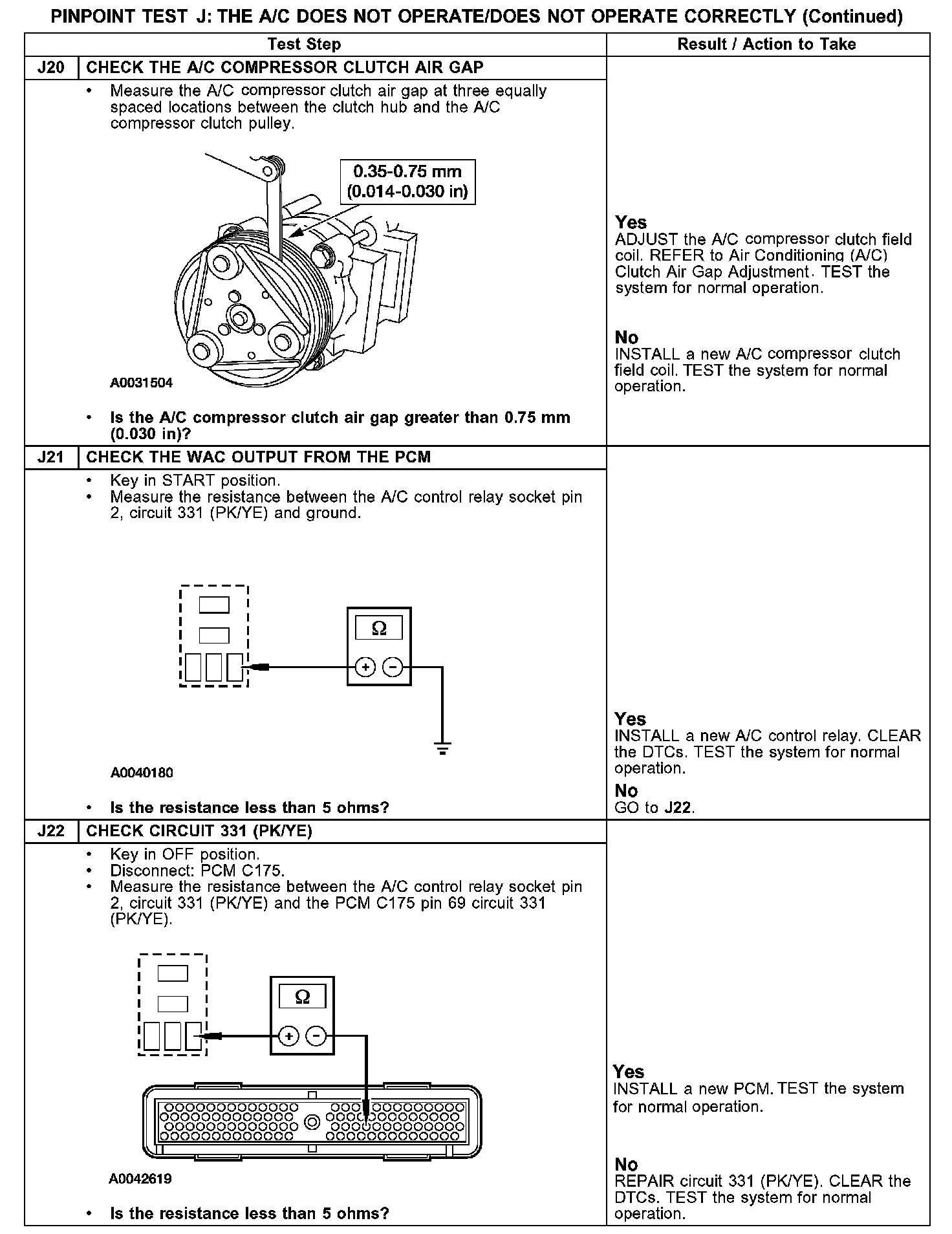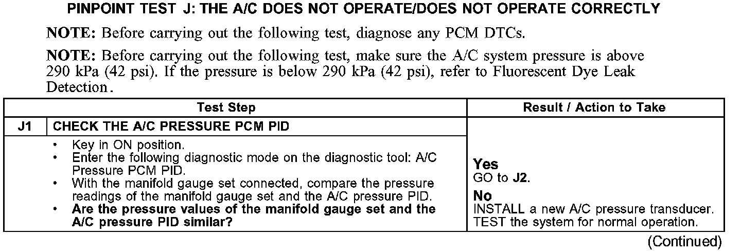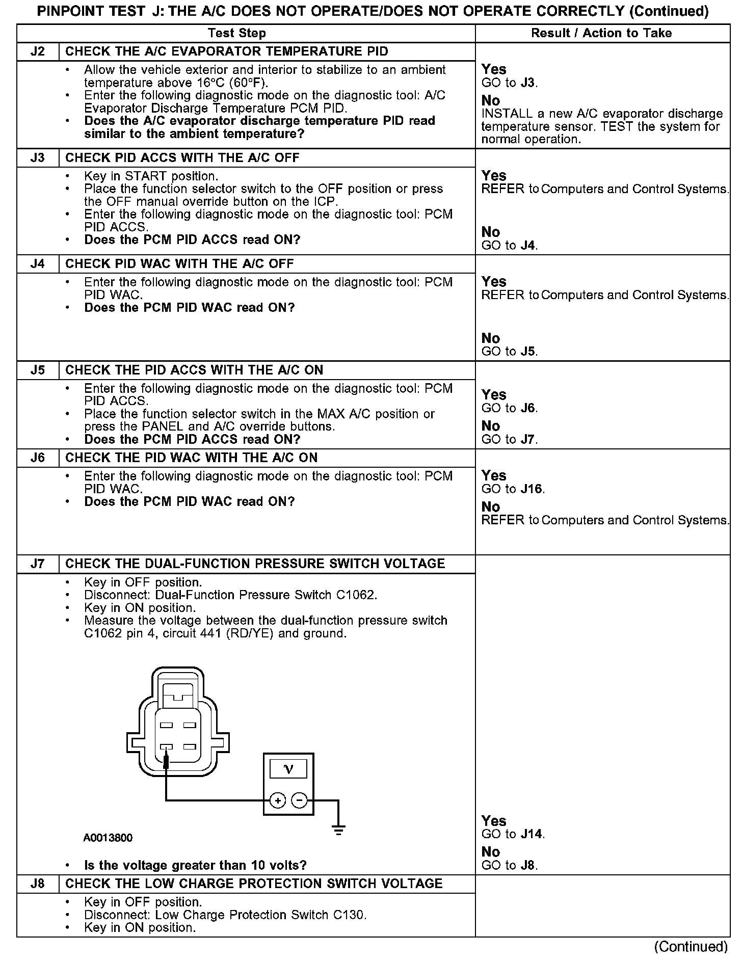 PINPOINT TEST J: THE A/C DOES NOT OPERATE/DOES NOT OPERATE CORRECTLY