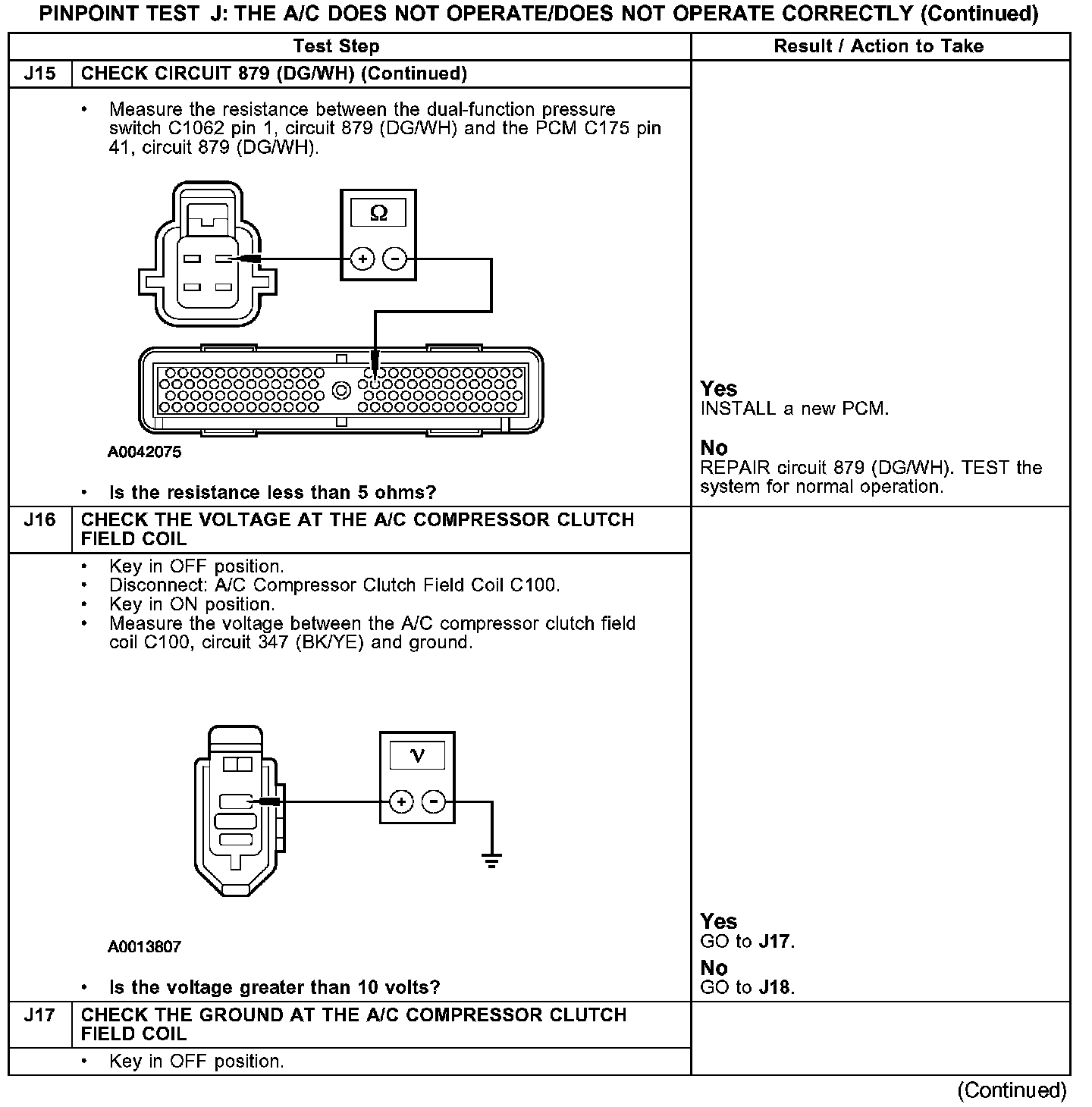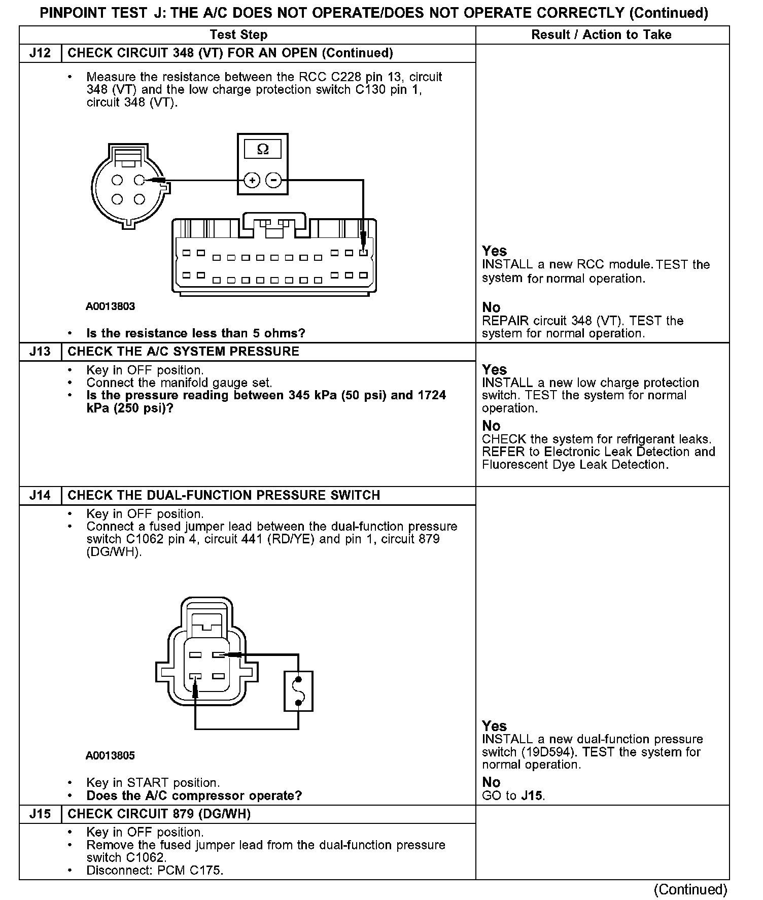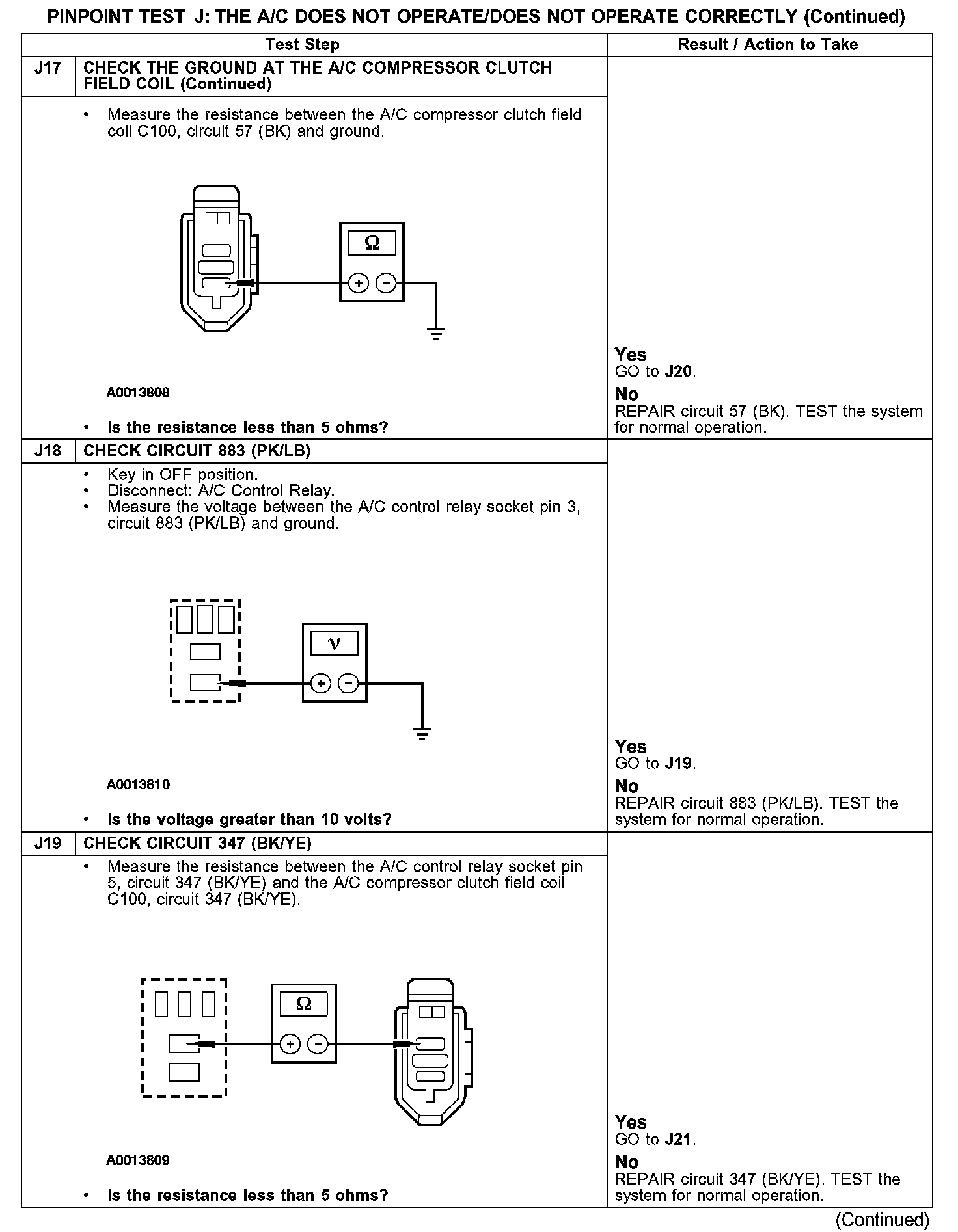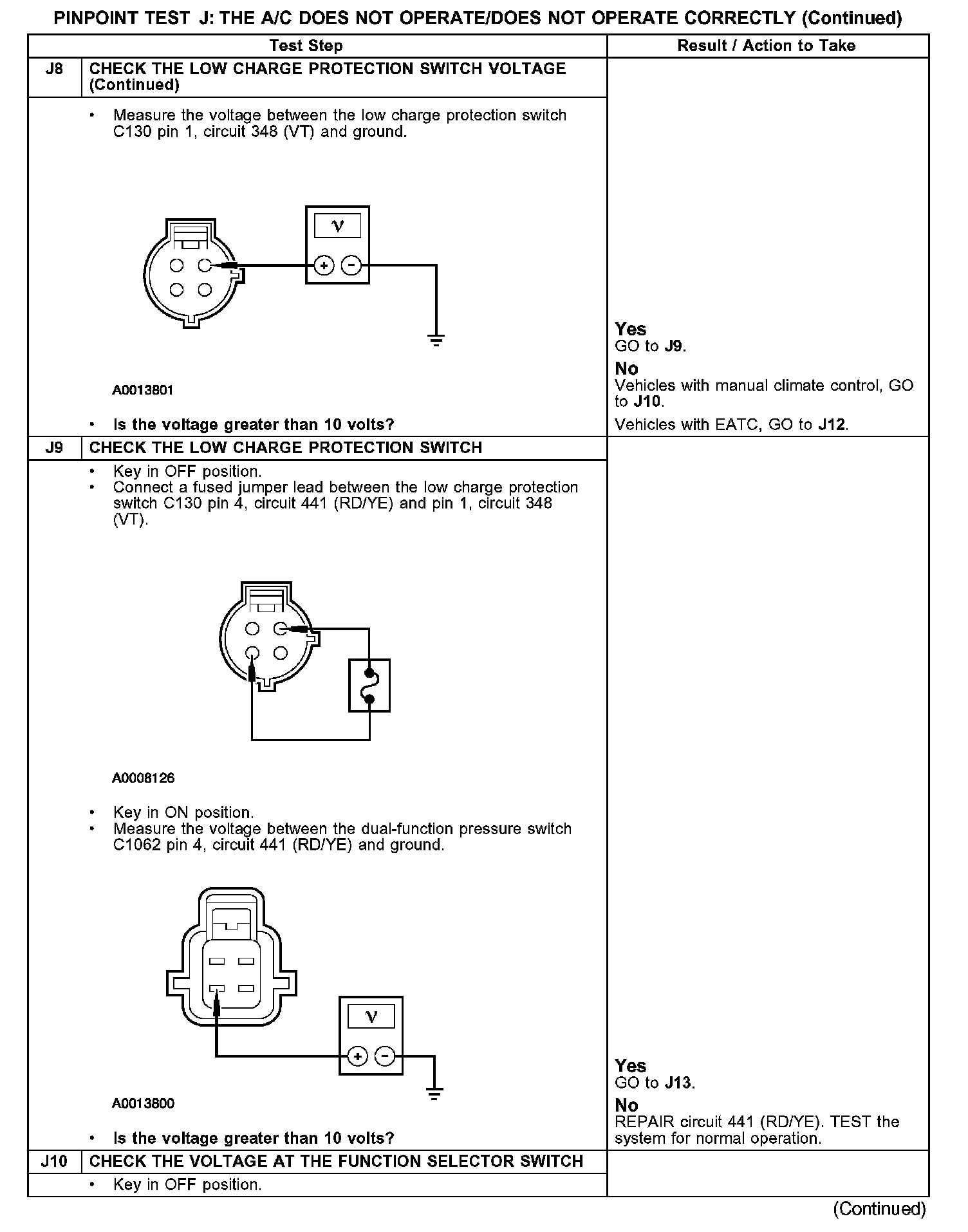 PINPOINT TEST J: THE A/C DOES NOT OPERATE/DOES NOT OPERATE CORRECTLY