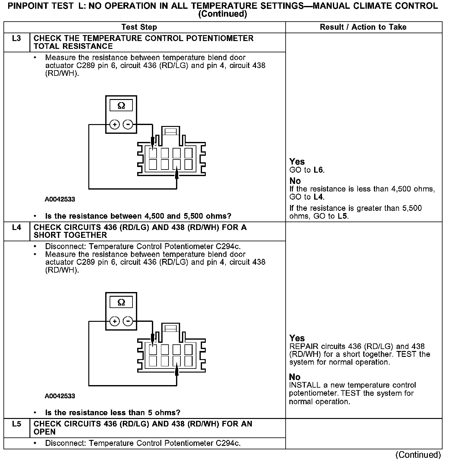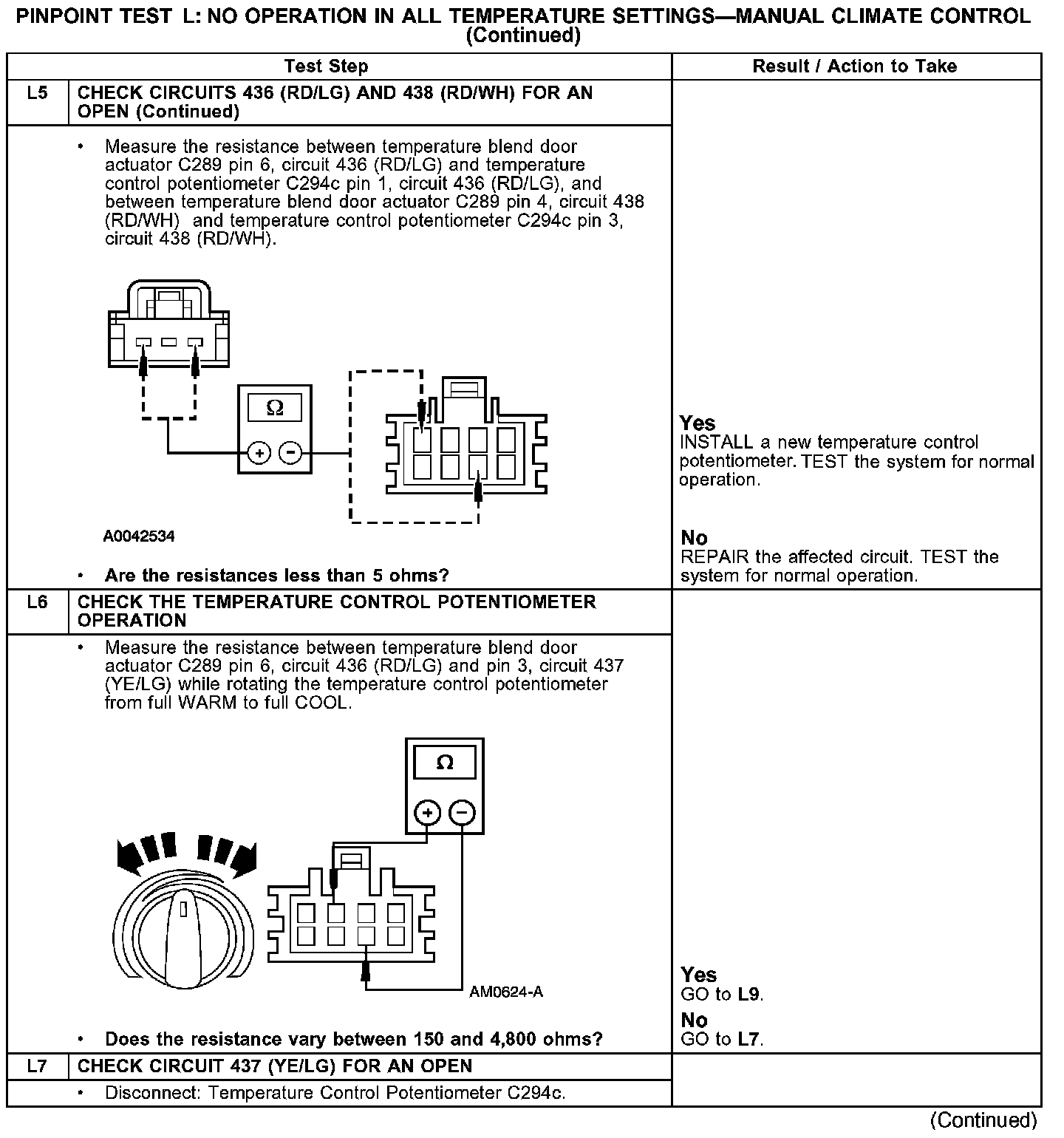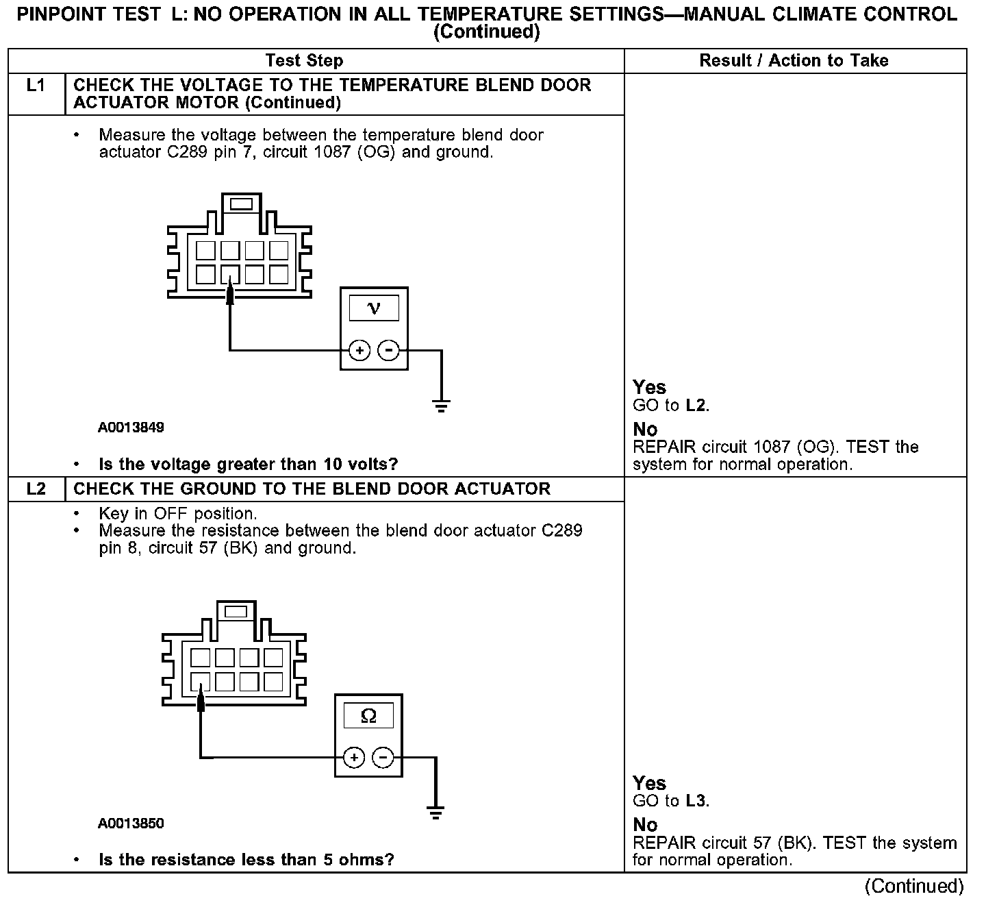 PINPOINT TEST L: NO OPERATION IN ALL TEMPERATURE SETTINGS MANUAL CLIMATE CONTROL