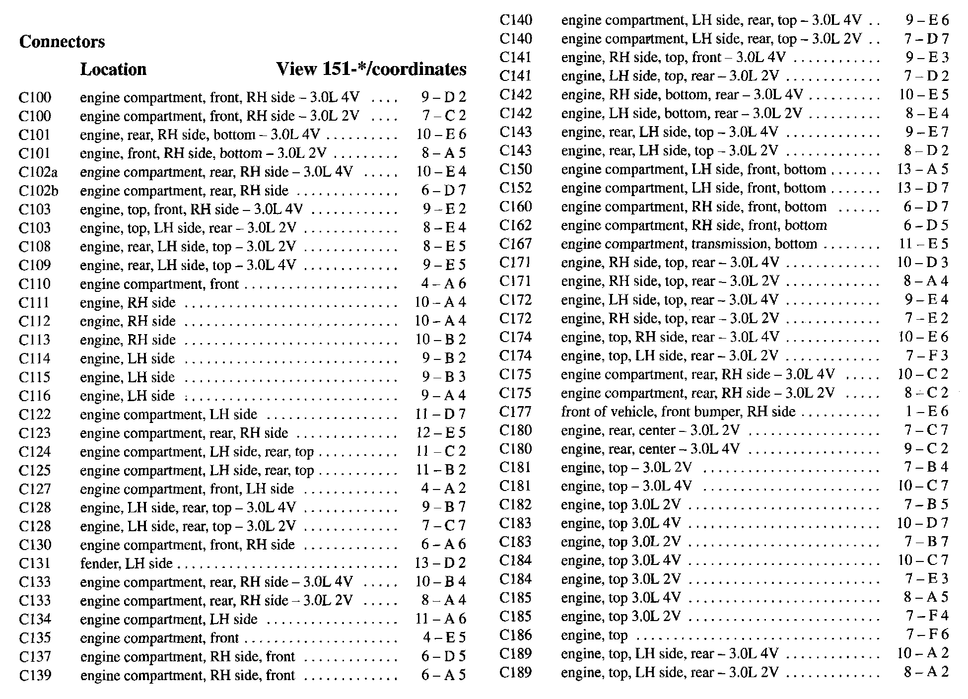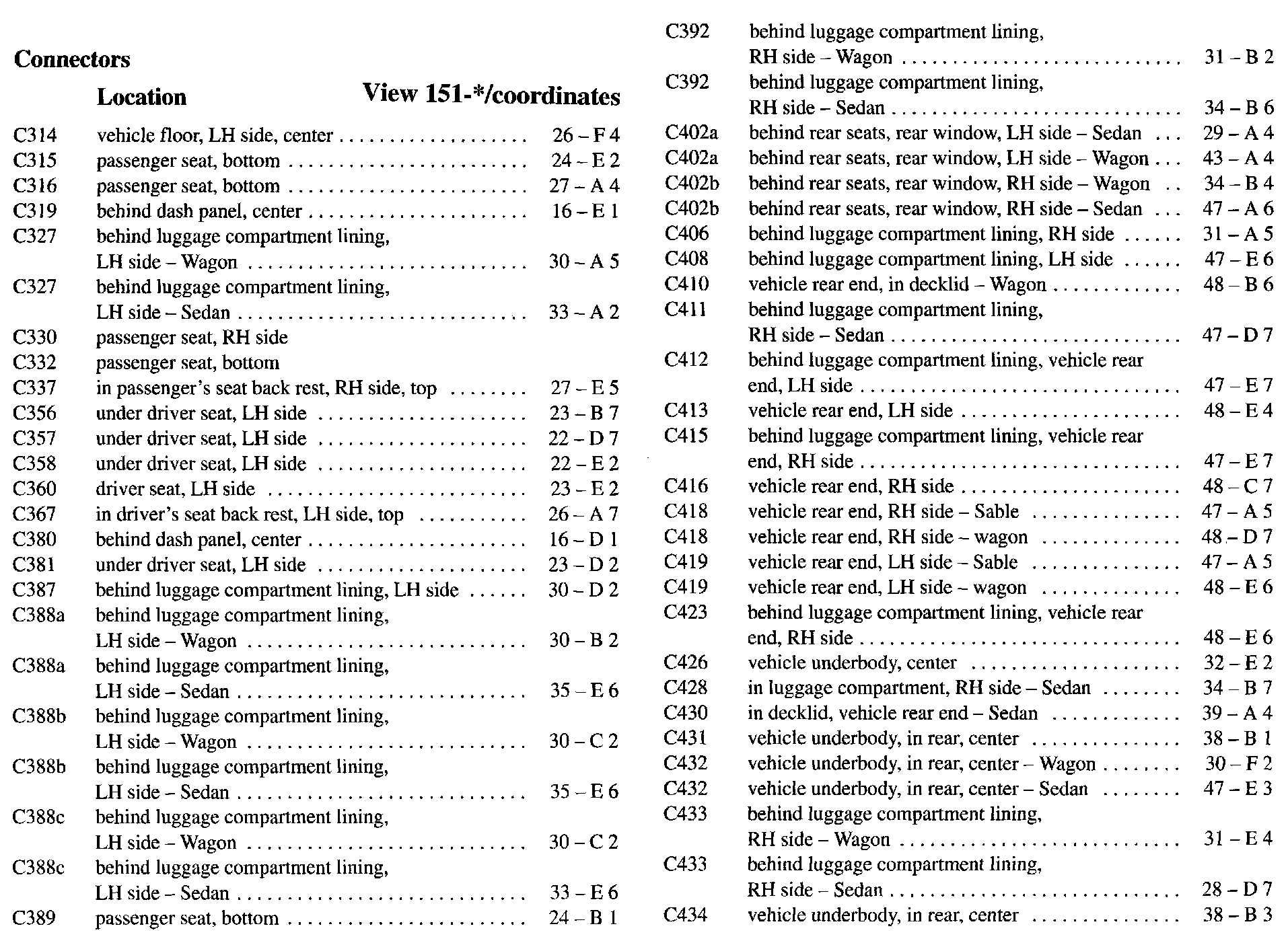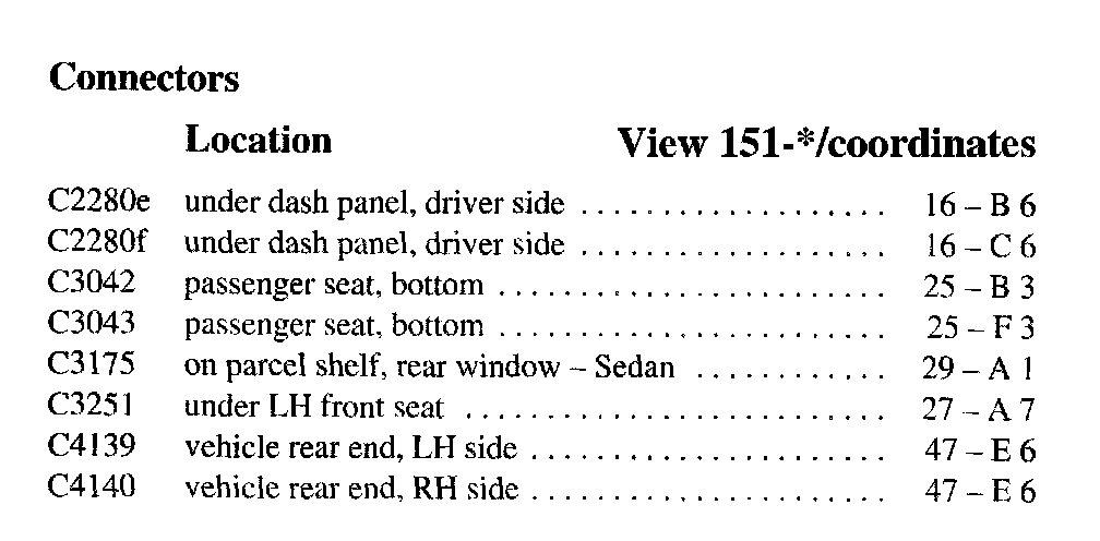 PLEASE NOTE: If a link on the Connector Location Index to a View is not provided, that means that the Connector and/or View in question does NOT apply to the vehicle model selected.