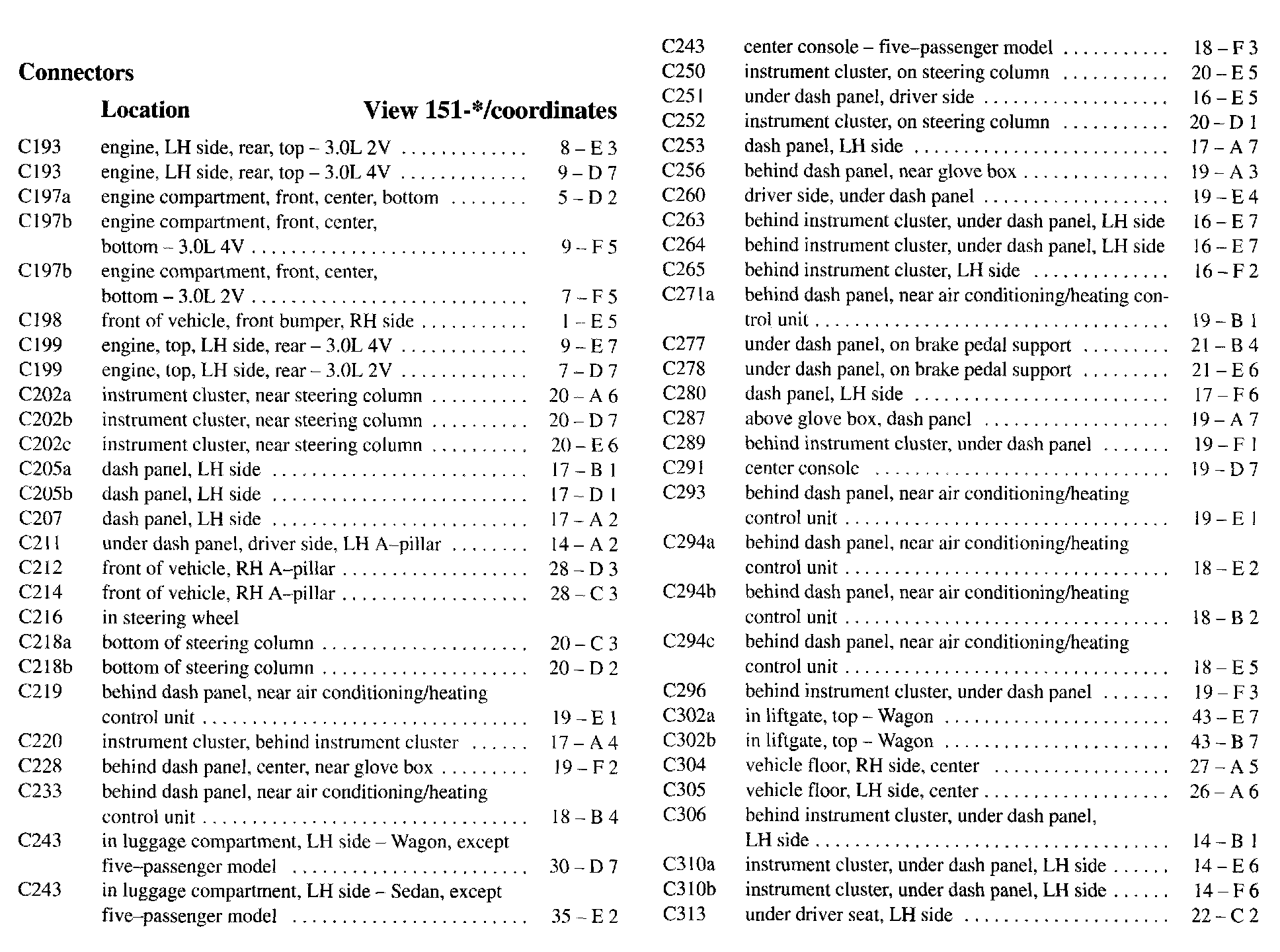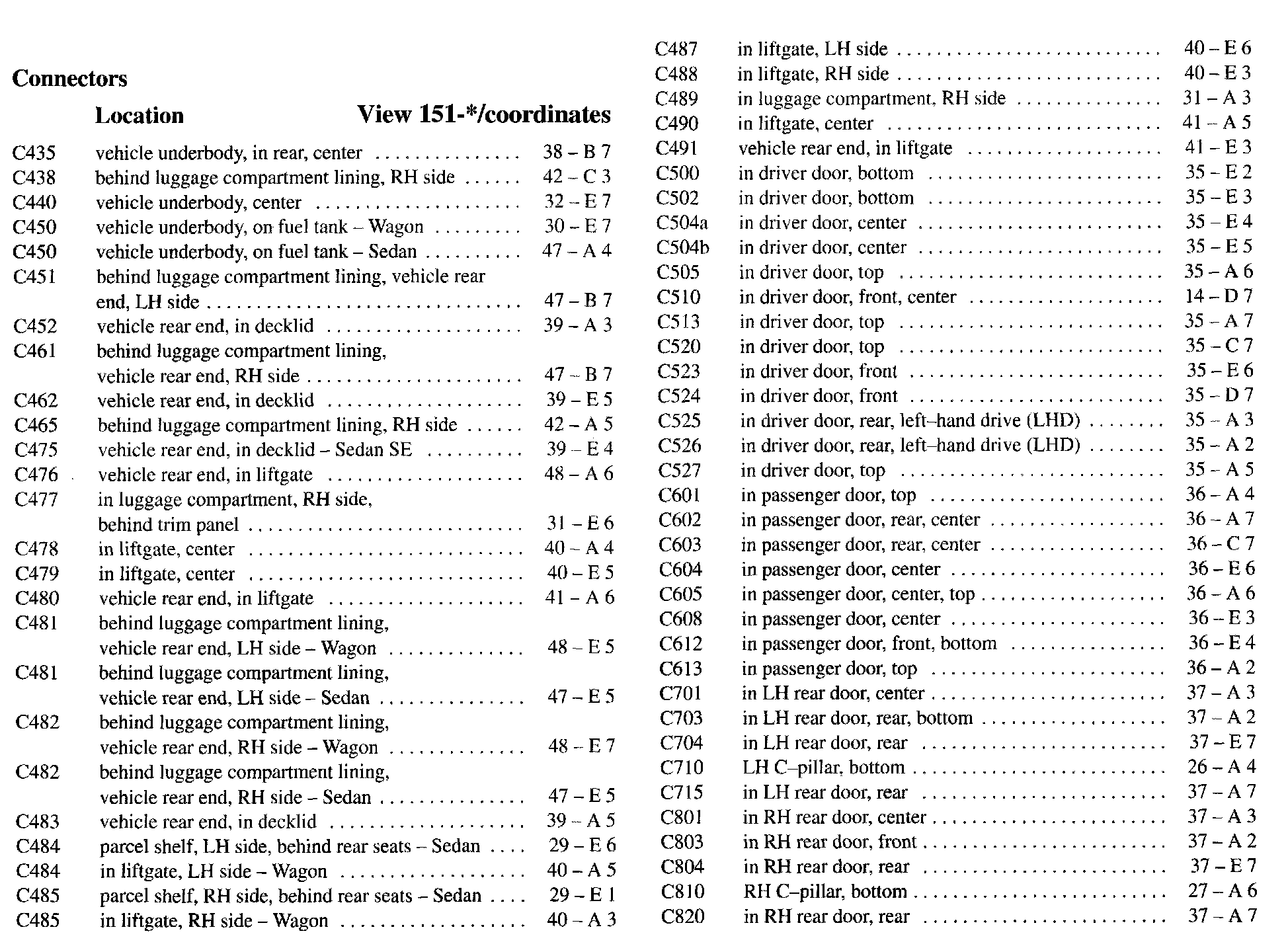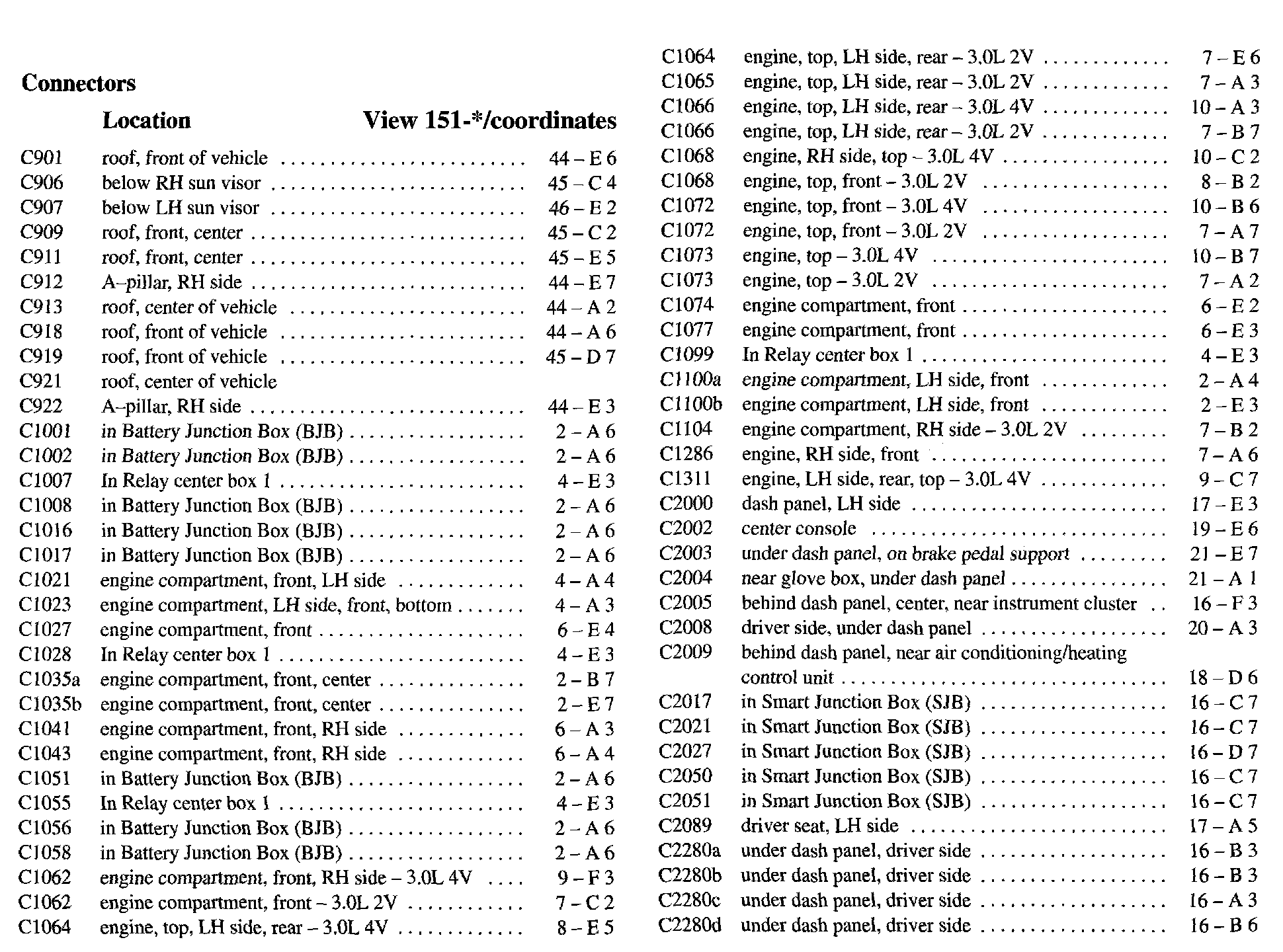 PLEASE NOTE: If a link on the Connector Location Index to a View is not provided, that means that the Connector and/or View in question does NOT apply to the vehicle model selected.
