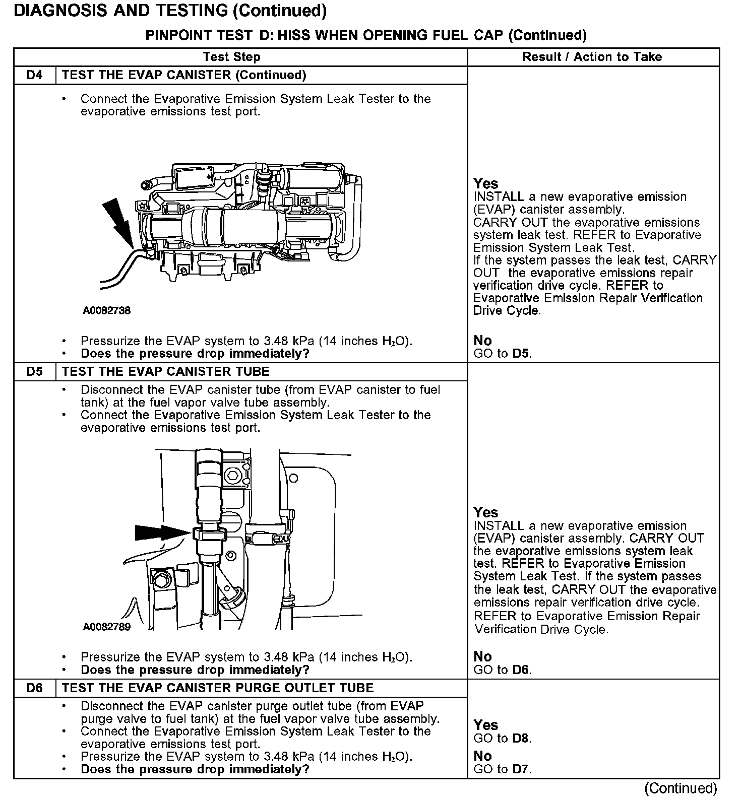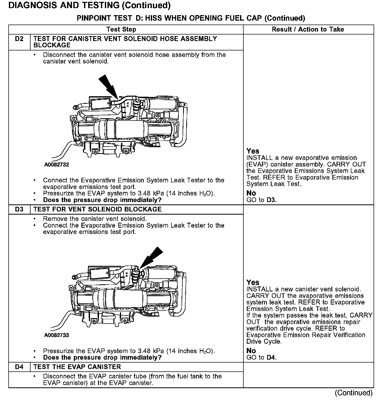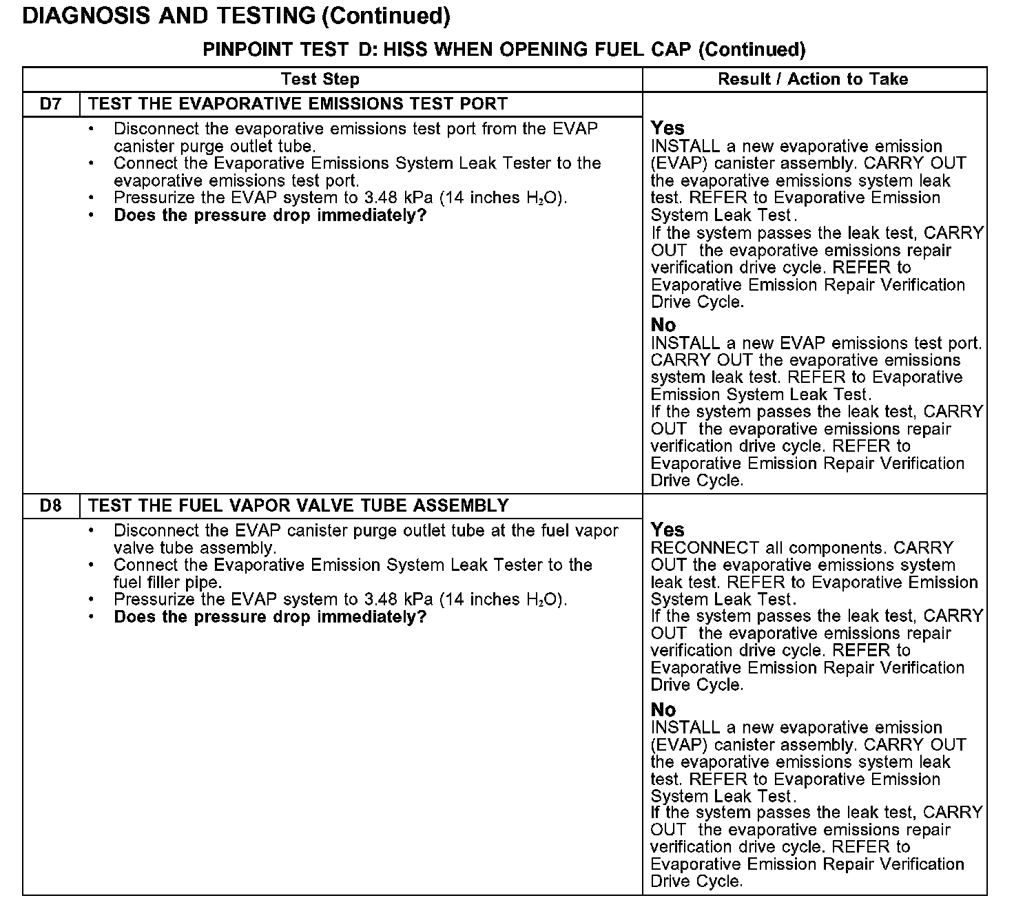 PINPOINT TEST D: HISS WHEN OPENING FUEL CAP