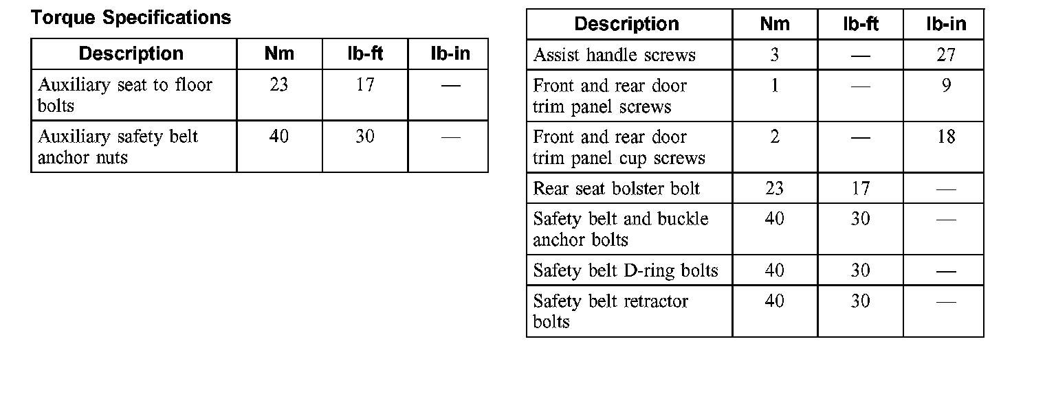 Torque Specifications: