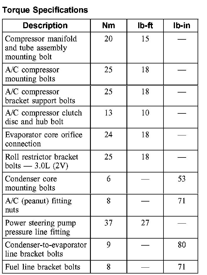 Torque Specifications:
