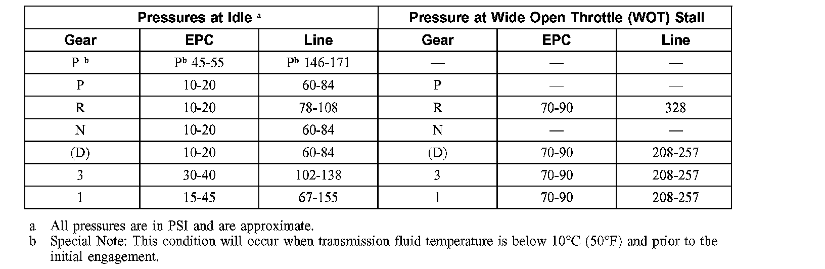Line Pressure Chart
