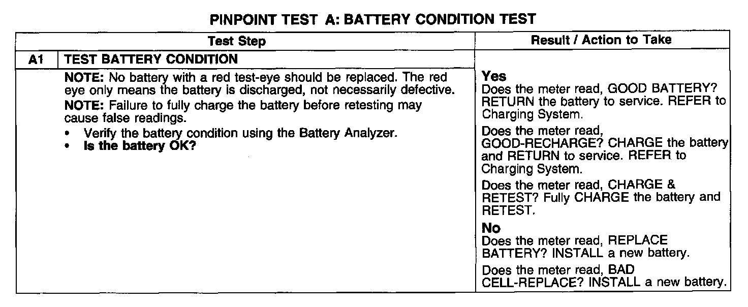 PINPOINT TEST A: BATTERY CONDITION TEST