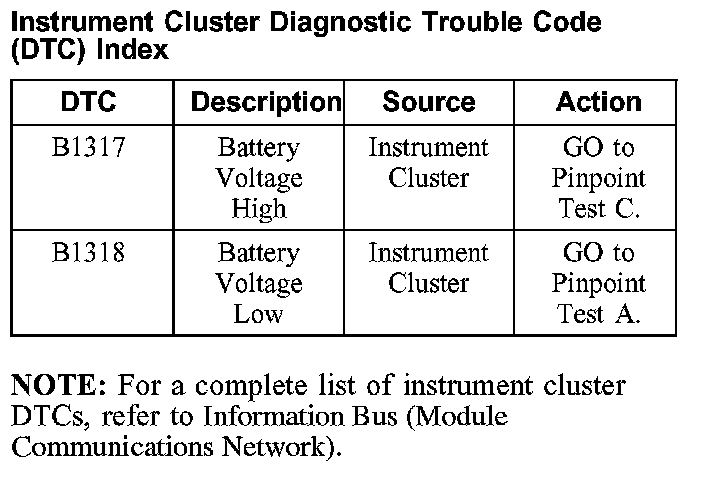 Instrument Cluster Diagnostic Trouble Code (DTC) Index