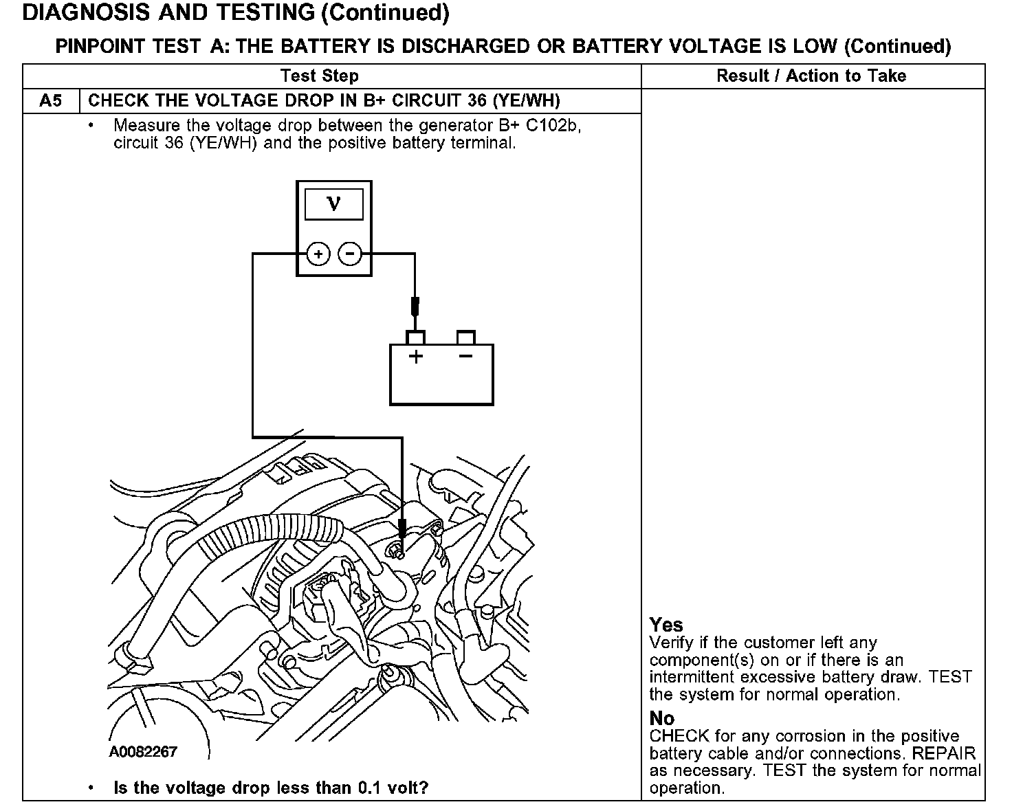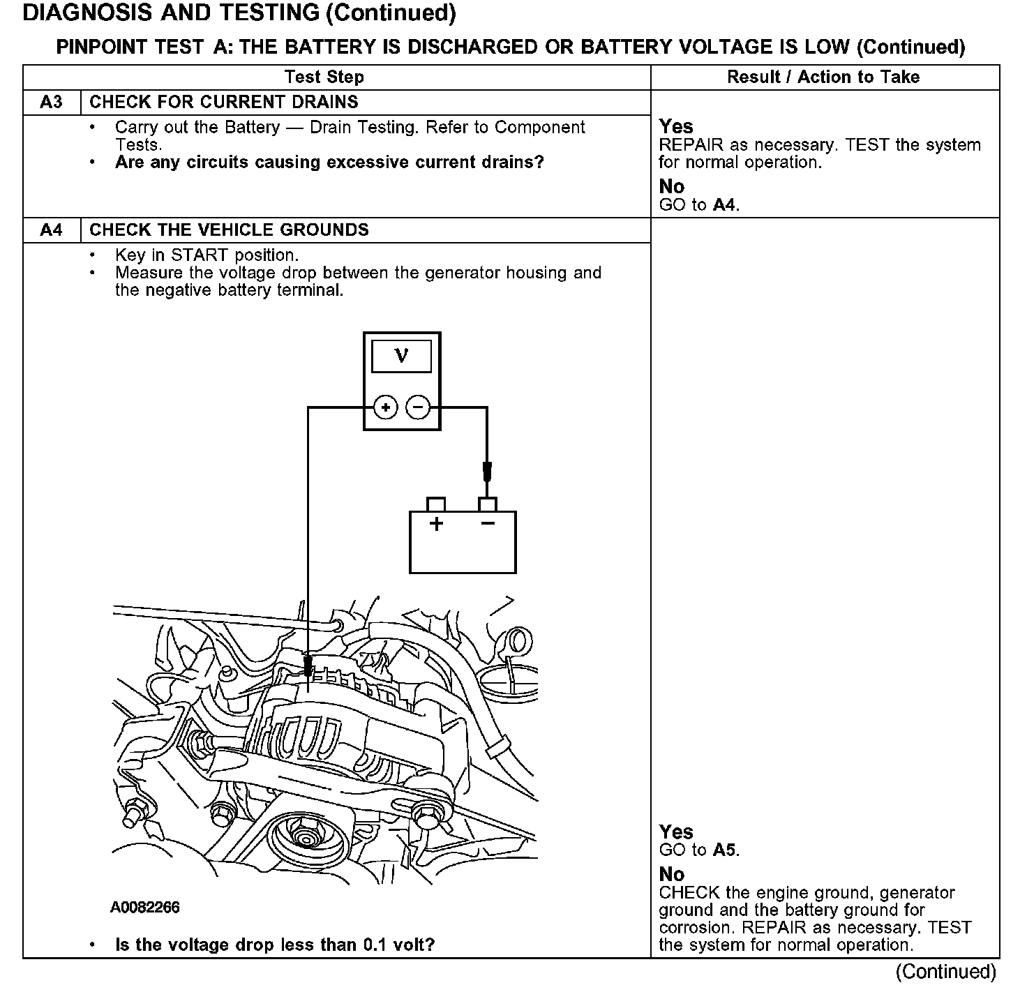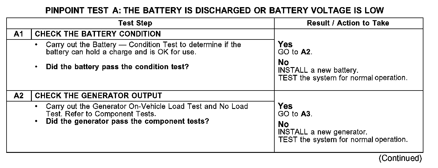 PINPOINT TEST A: THE BATTERY IS DISCHARGED OR BATTERY VOLTAGE IS LOW