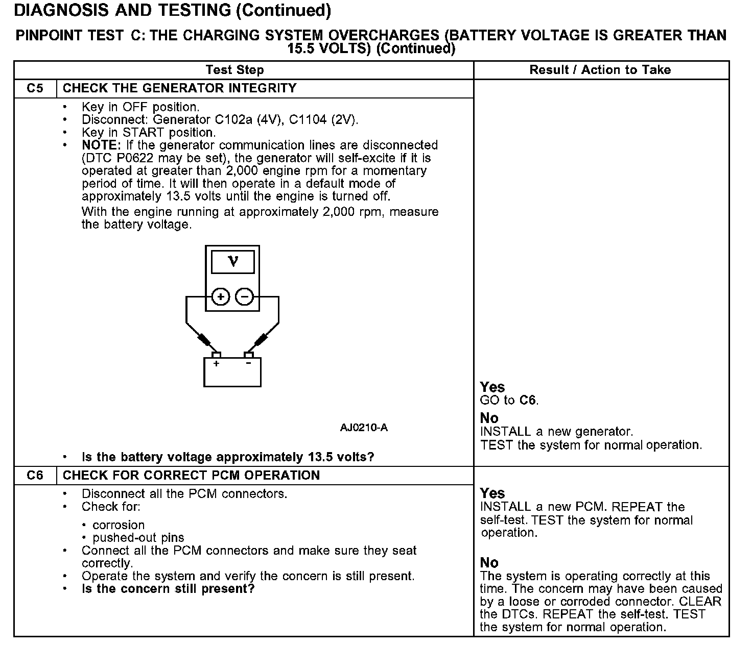 OVERCHARGES (BATTERY VOLTAGE IS GREATER THAN 15.5 VOLTS)